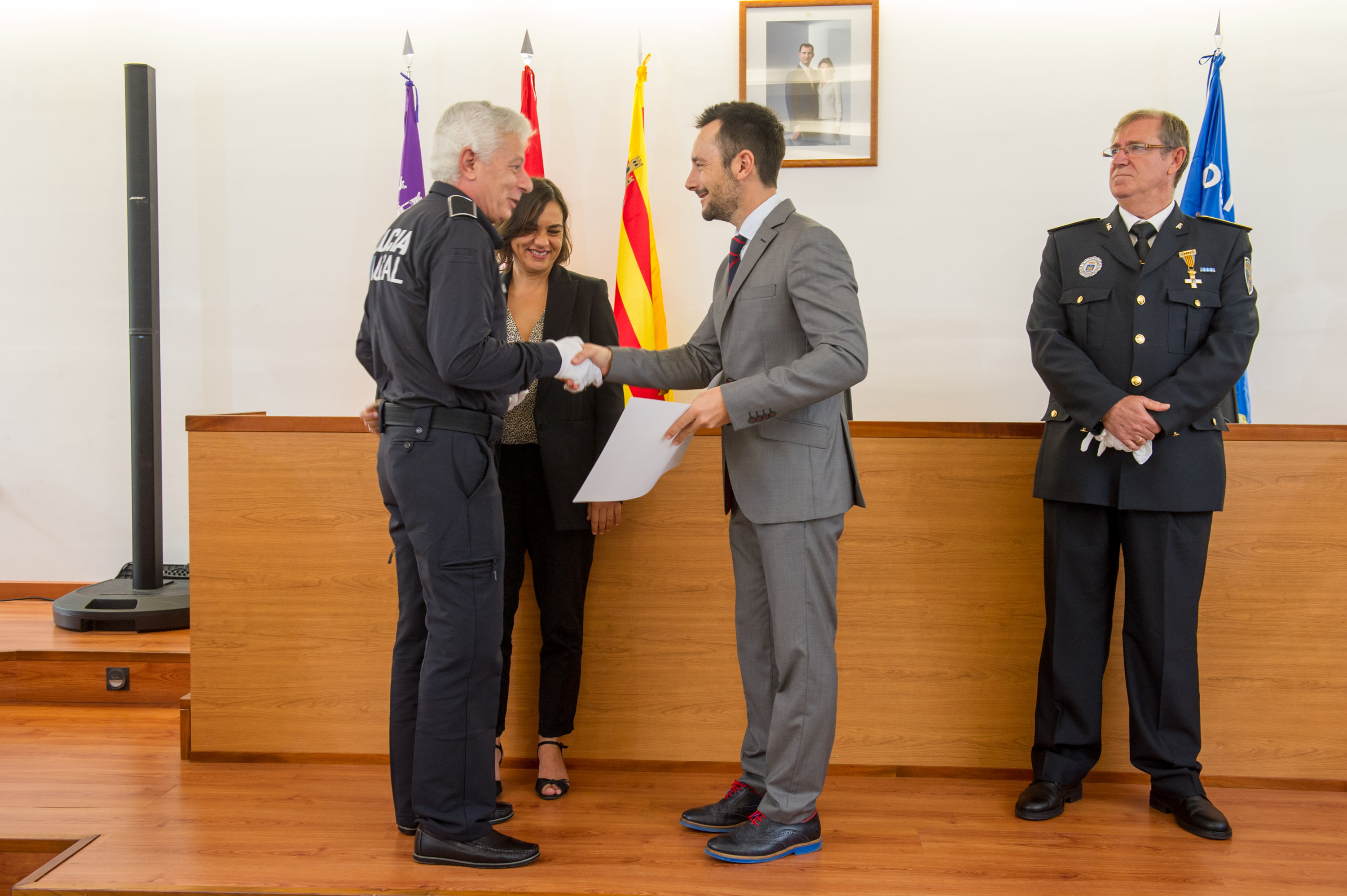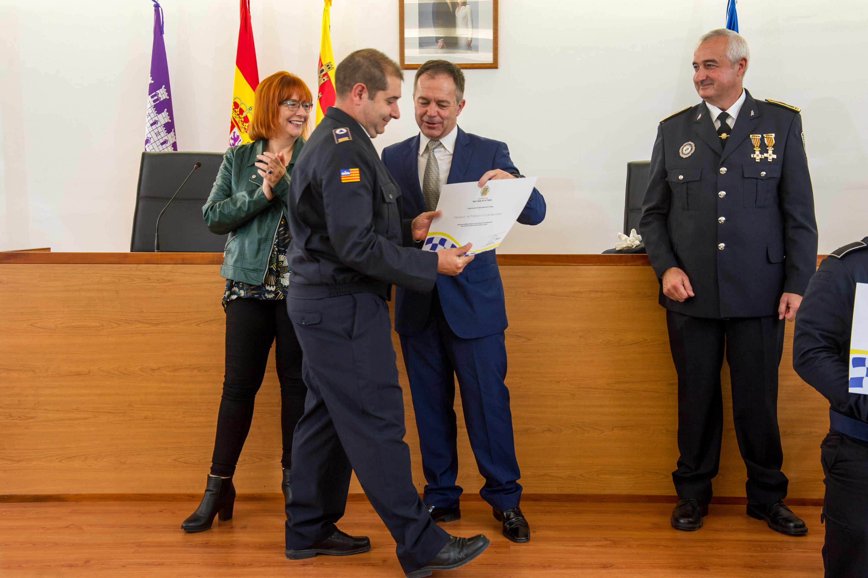 En el transcurso de la diada, los máximos representantes de cada ayuntamiento han hecho entrega de los galardones que distinguen a miembros de este cuerpo por su labor a lo largo del año. Un reconocimiento que ha comenzado con una mención especial al coordinador del Programa Policía Tutor de les Illes Balears, Rafael Covas Femeia “por el excepcional cumplimiento de sus funciones, coordinando los servicios de todos los policías referentes de manera diligente y eficaz”.