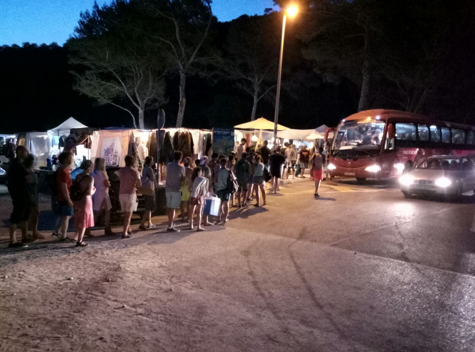 @Noudiari/El nuevo sistema para conectar la playa de Benirràs con transporte público empieza a notar las consecuencias del avance de la temporada. Este domingo de mediados de junio, la cola de gente para tomar el autobús llegaba hasta la mitad de la playa. Los bañistas y asistentes a la concurrida fiesta de los tambores tuvieron que esperar un buen rato para subirse al transporte público y poder regresar a la ciudad de Ibiza o al nuevo aparcamiento disuasorio situado en el futuro polígono de sa Plana.
