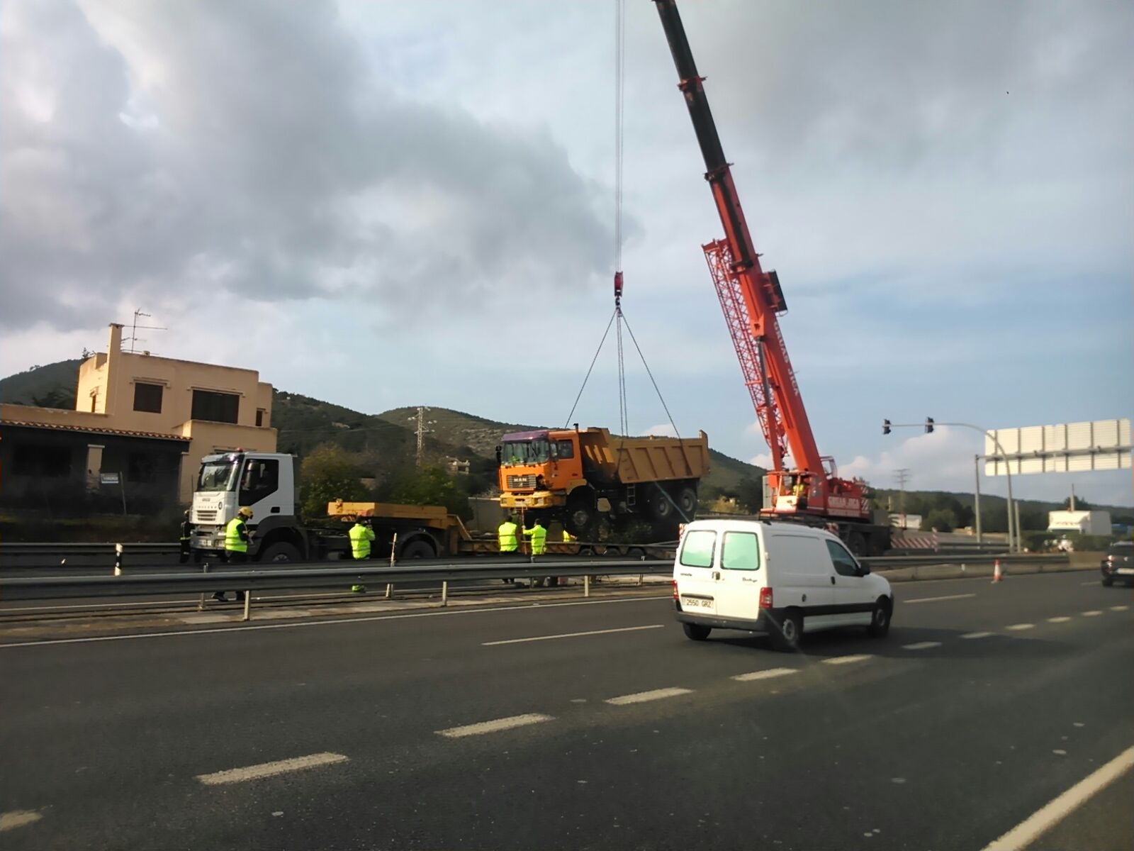 El Consell ha informado que poco antes de las 18.00 horas se ha restablecido el tránsito, tras lograr retirar el camión, que no llevaba carga, y que había volcado en la E20 en el tramo ubicado entre Can Misses y Can Sifre.