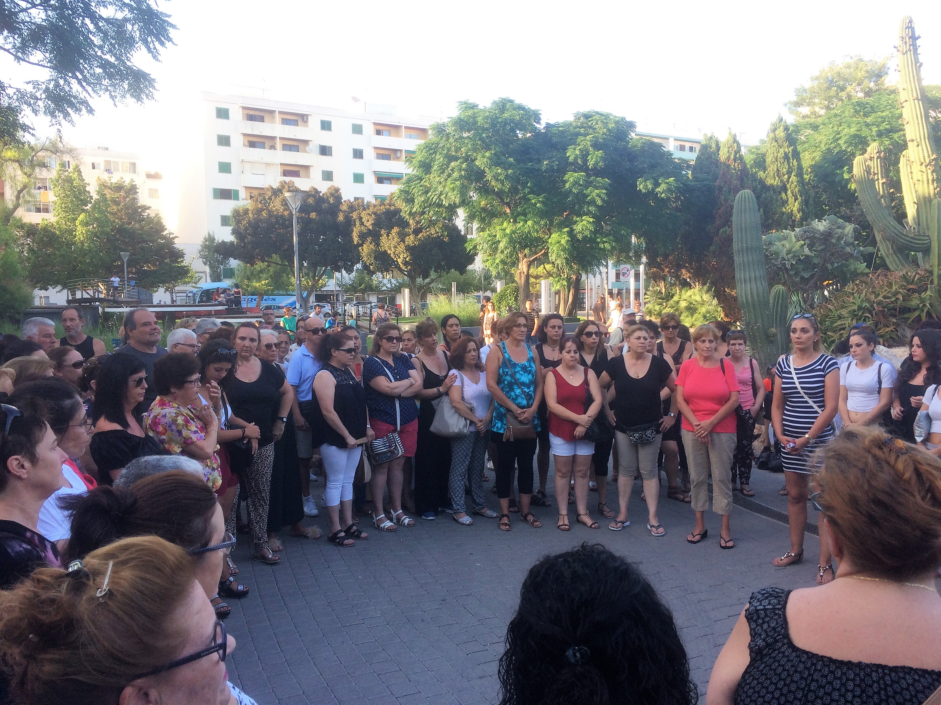 Las camareras de piso de Ibiza, custodiadas por seis Policías Nacionales, estaban convocadas simultáneamente con compañeras de profesión de otras ciudades de España. A diferencia de otras ciudades, las de Ibiza han preferido posponer sus quejas para otro momento sumándose al dolor por las víctimas de Barcelona y mostrando su apoyo a los familiares de los afectados.