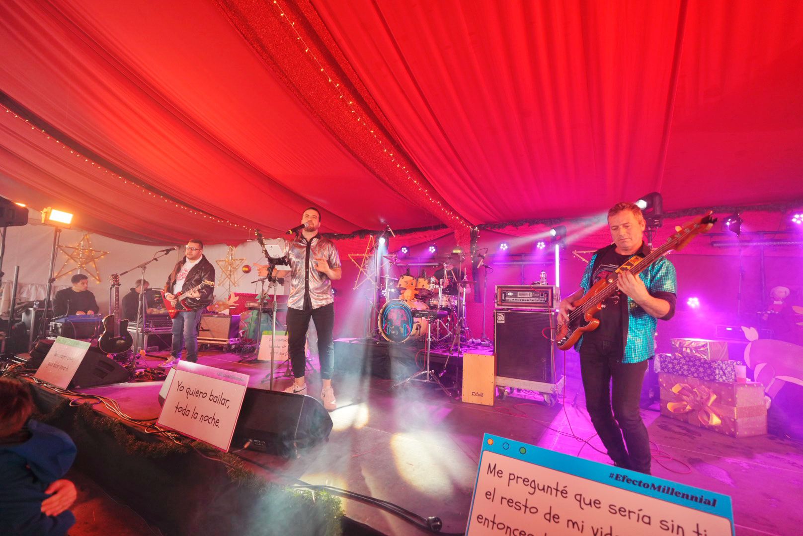 El grupo Esta me la sé caldeó el ambiente en la carpa de Sant Jordi para dar la bienvenida al año. Fotografías de Paco Natera de las campanadas en Sant Jordi.