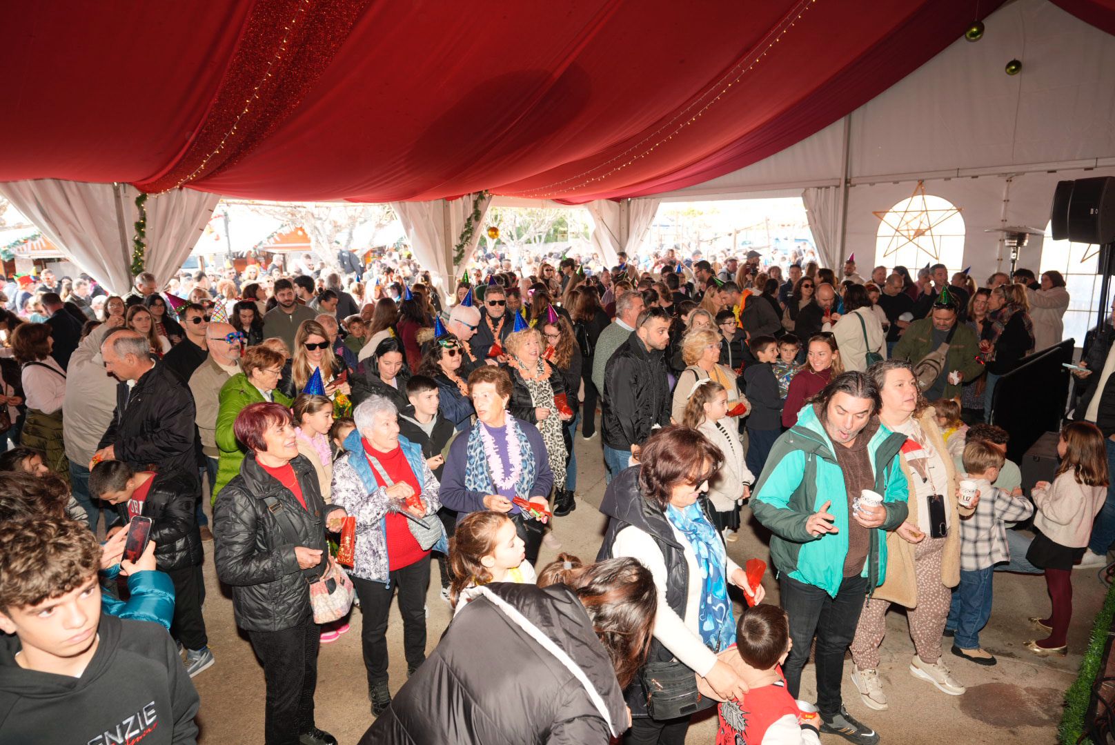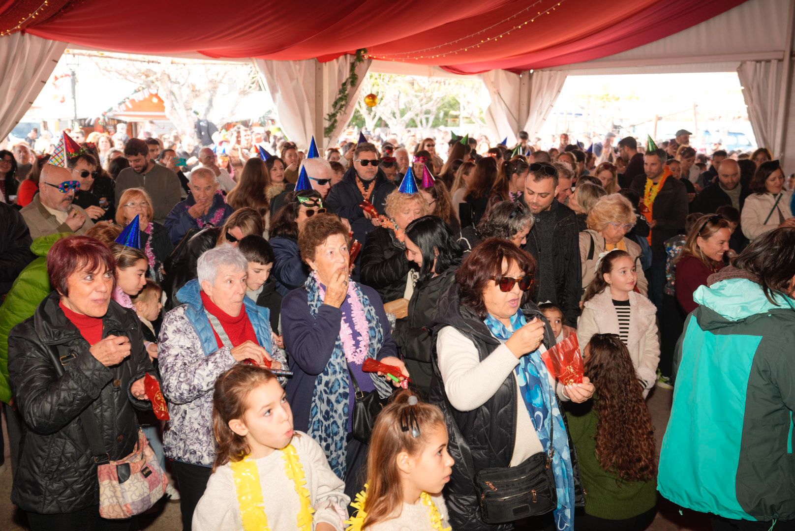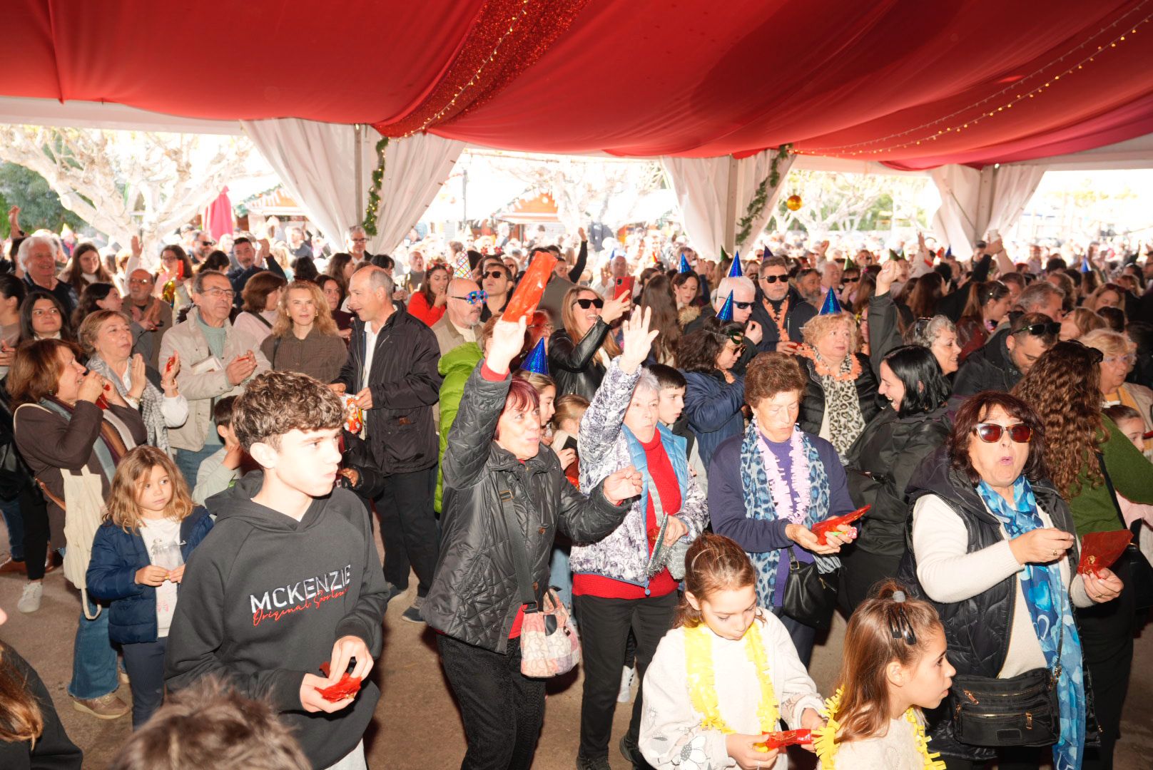 Si no fuera porque fuera era todavía de día, en el interior de la carpa se vivió el auténtico ambiente de la noche más celebrada del año: uvas, cava y bailoteo tempranero que gustó especialmente a los más pequeños y a los mayores del pueblo.