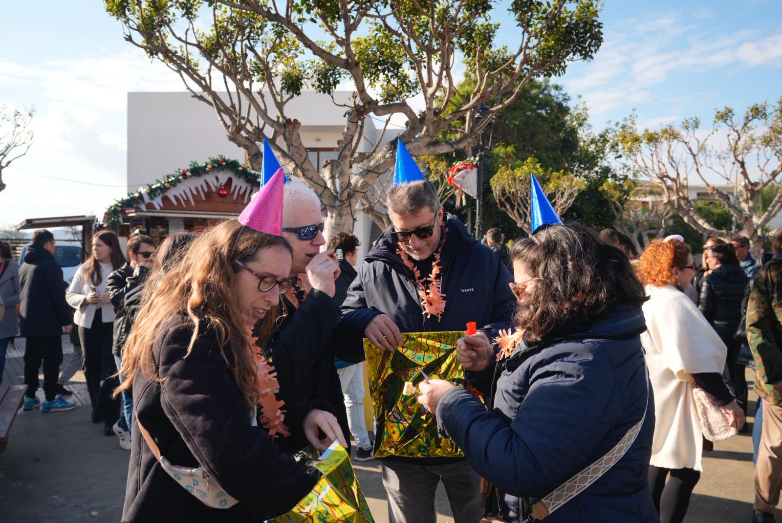 La Nochevieja y el arranque del Año Nuevo se han adelantado hoy en Ibiza, con las campanadas que anuncian el paso de 2025 a 2026 sonando a mediodía para las familias y grupos de amigos que han querido dar la bienvenida al año de manera anticipada, muy festiva… y solidaria.