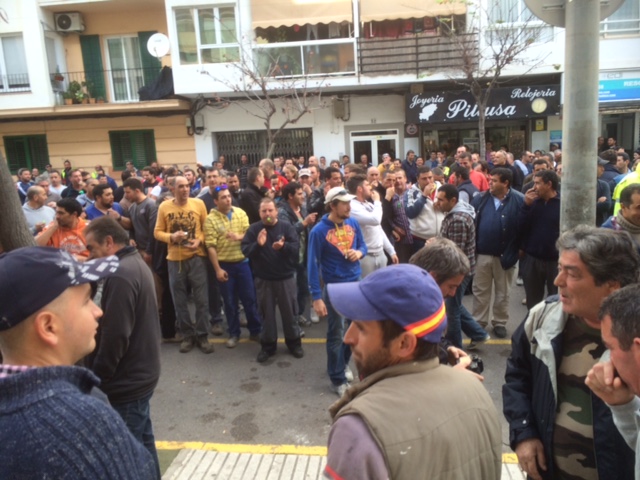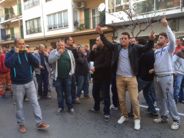 Lo que al principio comenzó como una manifestación con algunos gritos y cánticos de “queremos trabajo” y “fuera los verdes”, enseguida se convirtió en una sonora pitada que duró las dos horas de la manifestación. Después llegaron grandes carteles contra el decreto, y también los petardos, que los manifestantes lanzaban hacia el edificio del Consell, justo donde se ubicaba la prensa, y que llegaron a dañar a un fotógrafo en el oído.