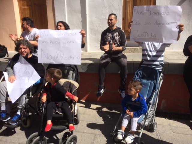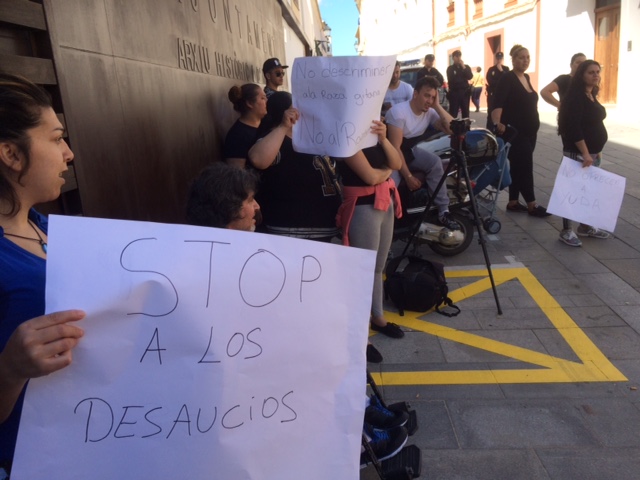 Puertas afuera, gritos de «que salga el alcalde», «no a los desalojos», «queremos una casa», y acusaciones de «racista» para el primer edil de Vila, Rafa Ruiz, se sucedieron durante todo el mediodía.