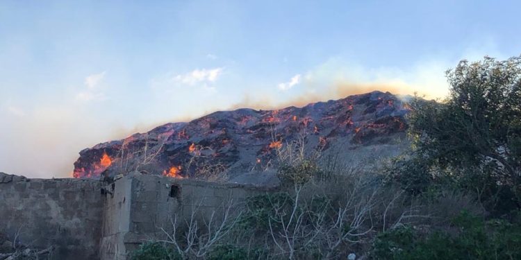 Está ardiendo toda la poda y la materia orgánica depositada y el Consell de Formentera sospecha que ha sido una combustión espontánea la que ha dado origen a las llamas.