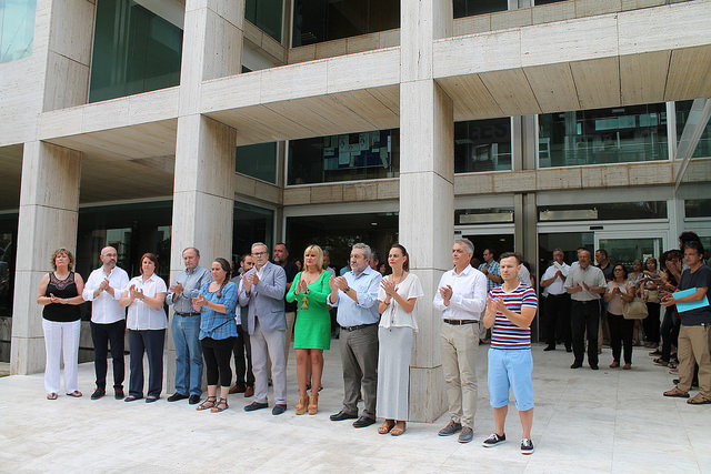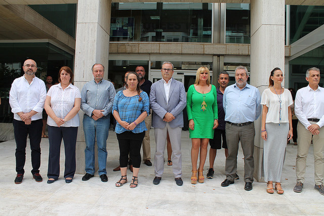 El minuto de silencio por el atentado de Niza en el Ayuntamiento de Sant Josep.