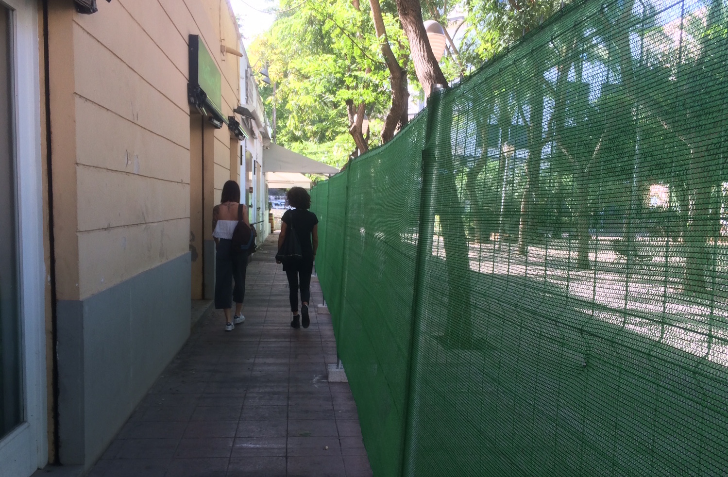 @Noudiari/Las obras de mejora de la Plaza del Parque han comenzado hoy con el vallado de la zona y con la retirada del mobiliario urbano. Las terrazas de los bares y restaurantes ya se han quitado, tal y como estaba previsto, y se ha dejado un paso peatonal entre las vallas y una de las fachadas para dar acceso a los comercios y establecimientos.