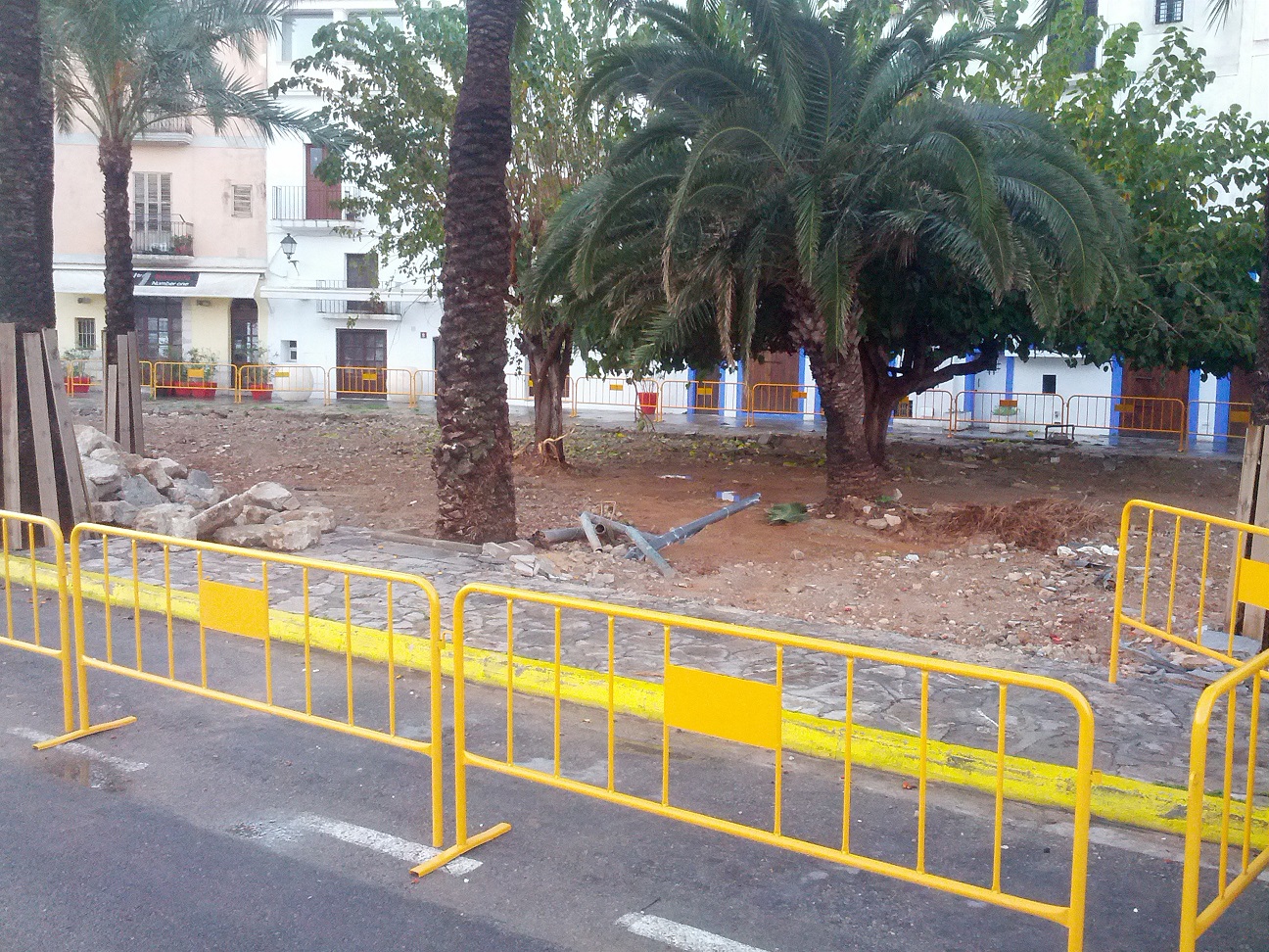 Un mes y medio después del inicio de las obras y tras unas primeras semanas en que, básicamente, se realizaron trabajos de topografia, los operarios han empezado a levantar el suelo y los trabajos ya son plenamente visibles tanto para los vecinos como para todos aquellos que se acerquen al puerto. La plaza de la calle Cipriano Garijo ha sido levantada, así como el muelle que se extiende desde el monumento de los Corsarios hasta el rompeolas. Recordemos que las obras las realiza la empresa Isolux Corsán con un presupuesto de 5,5 millones de euros y que, además, incluye la demolición del actual edificio de la estación marítima y la construcción de un nuevo edificio de servicios para la marina que se instale en este muelle.