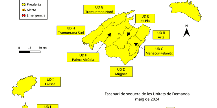 Según ha recordado la Conselleria de la Mar y el Ciclo del Agua, todo el archipiélago se encuentra en situación de prealerta por sequía, lo que hace necesario una «vigilancia continua y una gestión prudente de los recursos hídricos».