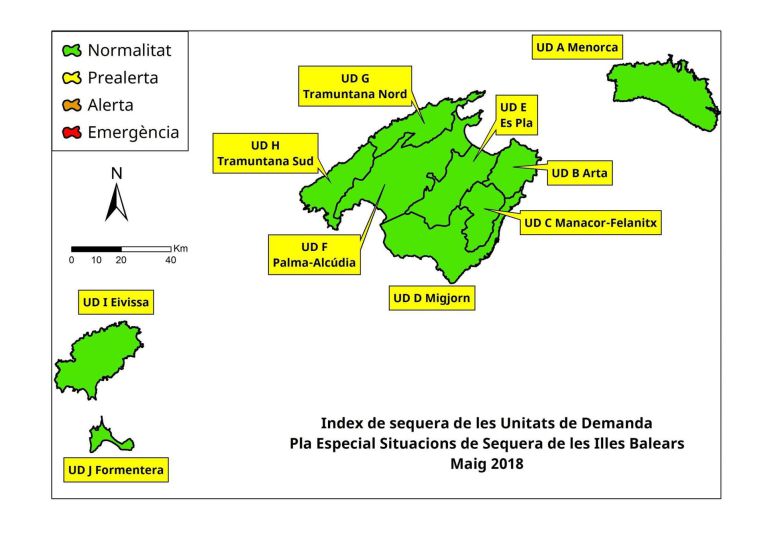 Dadas las lluvias de mayo, que junio suele ser seco, y que los consumos de este mes tradicionalmente ya empiezan a ser importantes, alguna de las unidades de demanda como UD Menorca, UD Manacor-Felanitx, UD Eivissa y UD Formentera podrían entrar en situación de prealerta.