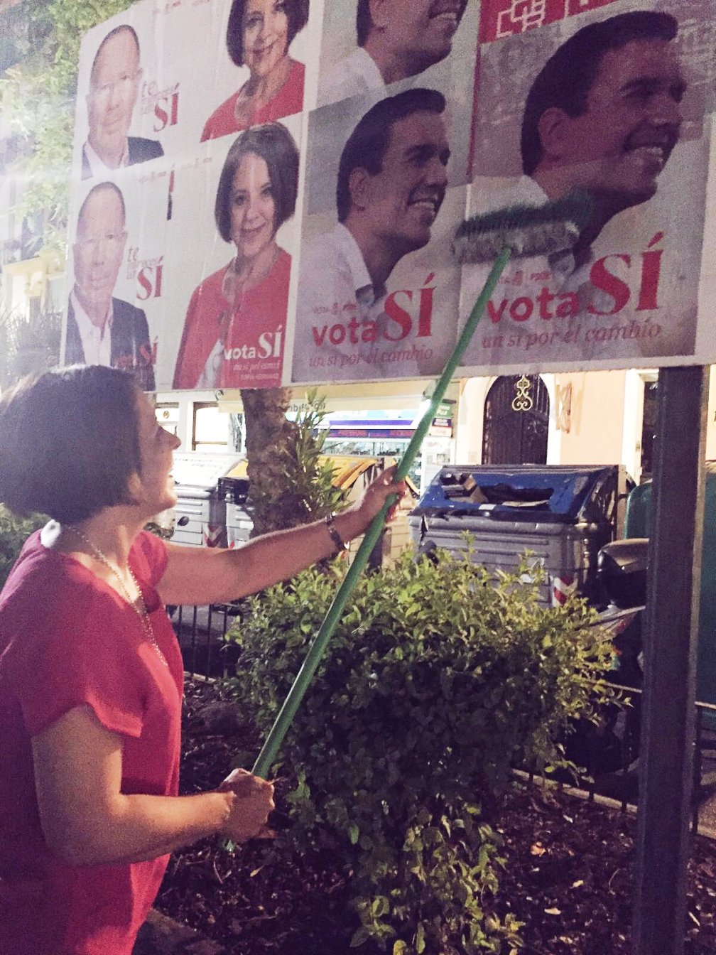 La socialista Sofía Hernanz, durante la tradicional pegada de carteles.
