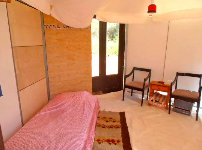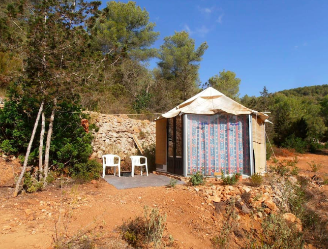 Vivir en Ibiza en esta casa tendrá el hándicap de desplazarse 40 metros para encontrar el inodoro o la ducha, además de necesitar un medio de transporte específico para acceder. Un anuncio que ofrece un «techo tipo tienda» y una opción «ideal para amantes del yoga y la naturaleza». También por 19 euros diarios con capacidad para malvivir hasta dos personas.