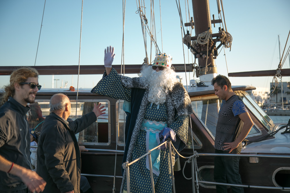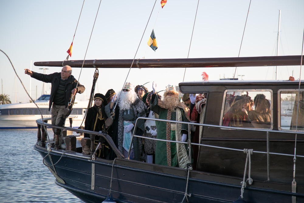 @Noudiari / Puntualmente a las 17.10 horas y a bordo de la goleta ‘Arabian Nights’, Melchor, Gaspar y Baltasar, acompañados de sus ayudantes, desembarcaron en el puerto de la Savina, donde numerosos niños les esperaban con mucha ilusión junto a sus familiares.