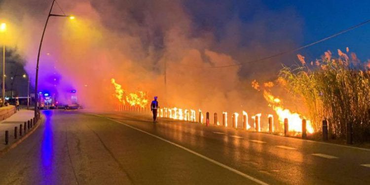 La espectacularidad del fuego, que se debe a la combustión de la caña, hizo que saltaran todas las alarmas en una zona donde tristemente se suceden este tipo de incendios periódicamente. Además, ardieron los bolardos de la carretera, con lo que la imagen era todavía más impactante.