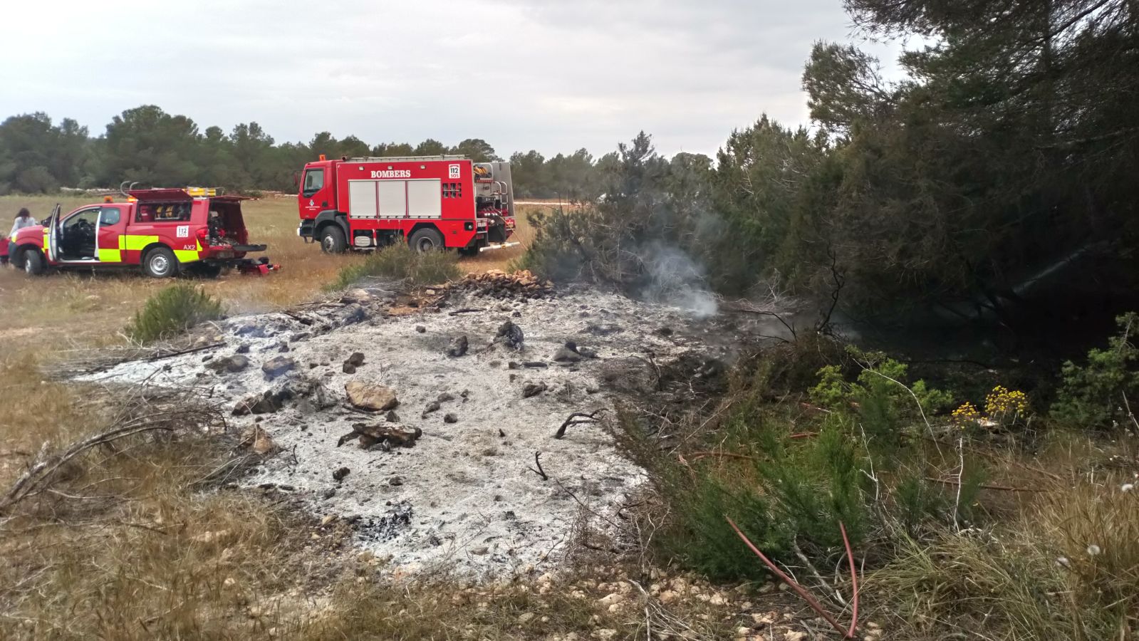 @Noudiari / Los bomberos de Formentera han frenado en seco el avance de las llamas en un incendio forestal originado esta mañana en Cap de Barbaria, Formentera, que gracias a la rápida actuación de los profesionales ha quedado en un mero susto, con un balance de 50 metros cuadrados de sabinar quemados. El aviso se ha dado a las 10,20 de la mañana y solo una hora después el fuego estaba extinguido. Hasta el lugar se han desplazado dos vehículos de bomberos y cuatro efectivos del parque, además de Policía Local, Guardia Civil y Protección Civil.