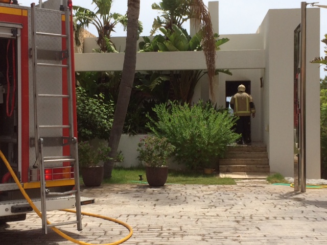 @Noudiari/Los Bomberos de Ibiza han sofocado este mediodía, poco después de las 12.00 horas, un incendio una vivienda vacacional de lujo, ubicada en la urbanización Vista Alegre, de la zona de Es Cubells, municipio de Sant Josep.
