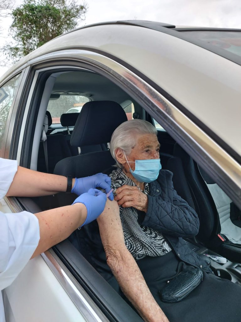 El Centro de Salud Sant Antoni de Portmany citó ayer a los mayores en el aparcamiento del centro y vacunó a más de medio centenar de nonagenarios. El dispositivo estaba programado para que recibieran la vacunación en el coche, sin necesidad de apearse.