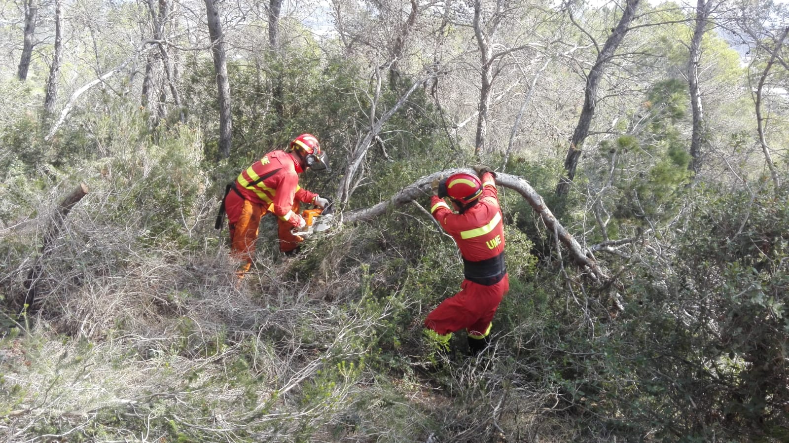 Además de los 105 militares de la UME, han participado 65 efectivos del resto de organismos que han formado parte del simulacro, entre la Dirección General de Emergencias del SEIB 112, el IBANAT, el 061, Guardia Civil, Policía Nacional, Salvamento Marítimo, Bomberos de Eivissa, Cruz Roja, Policía Local y Protección Civil, entre otros.