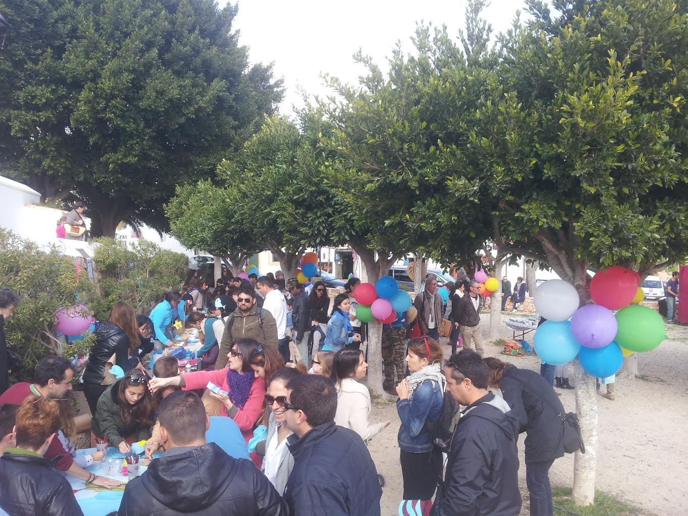 Es domingo y no han madrugado porque no toca cole, pero sí se han arremangado para darlo todo con los pinceles en la plaza que se abre tras la iglesia de Santa Gertrudis a las 11h, donde la Alianza Mar Blava ha organizado una jornada de cuenta cuentos, pintura de caras y manualidades con materiales reciclados. Además, también se ha puesto a su disposición todos los materiales necesarios para elaborar las pancartas que se enarbolarán en la manifestación convocada para el día 22 de febrero. Arte comprometido de la mano de quienes, si no se detienen los proyectos de Cairn Energy, puede que lleguen a olvidar que el mar de las Pitiüses una vez brilló con la transparencia del cristal.