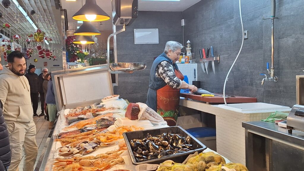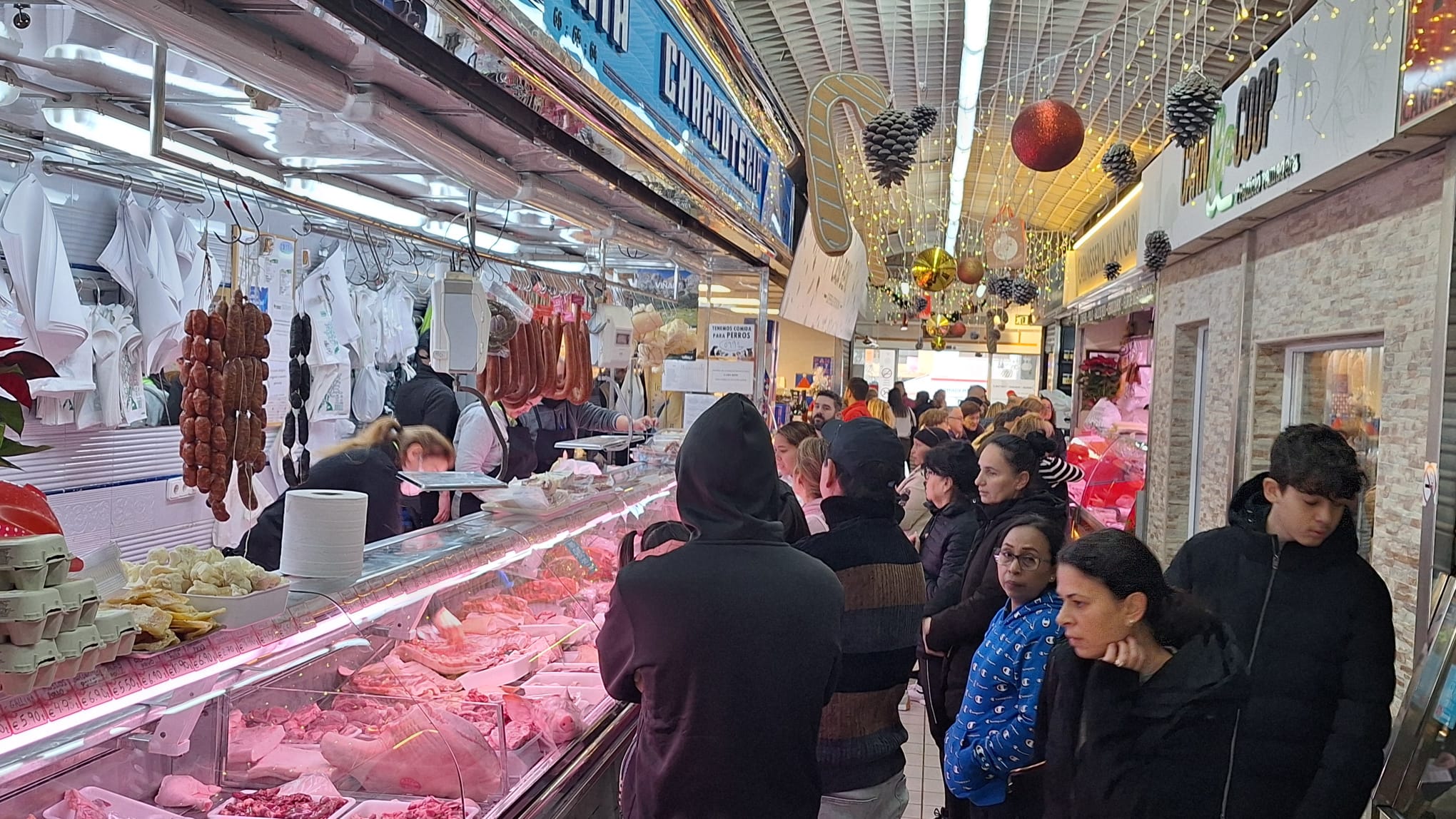 Es martes 23 de diciembre por la mañana y el Mercat Nou de Vila bulle de actividad. En algunos pasillos, especialmente donde se concentran las carnicerías, resulta difícil circular a causa del gran número de compradores que esperan ser atendidos. “Hoy y mañana, el 30 y el 31 son los días clave. Si en estos días no se trabaja mucho, mal asunto”, comenta Toni Valeriano, de Pescados Oliver, uno de los puestos clásicos del Mercat Nou de Vila.