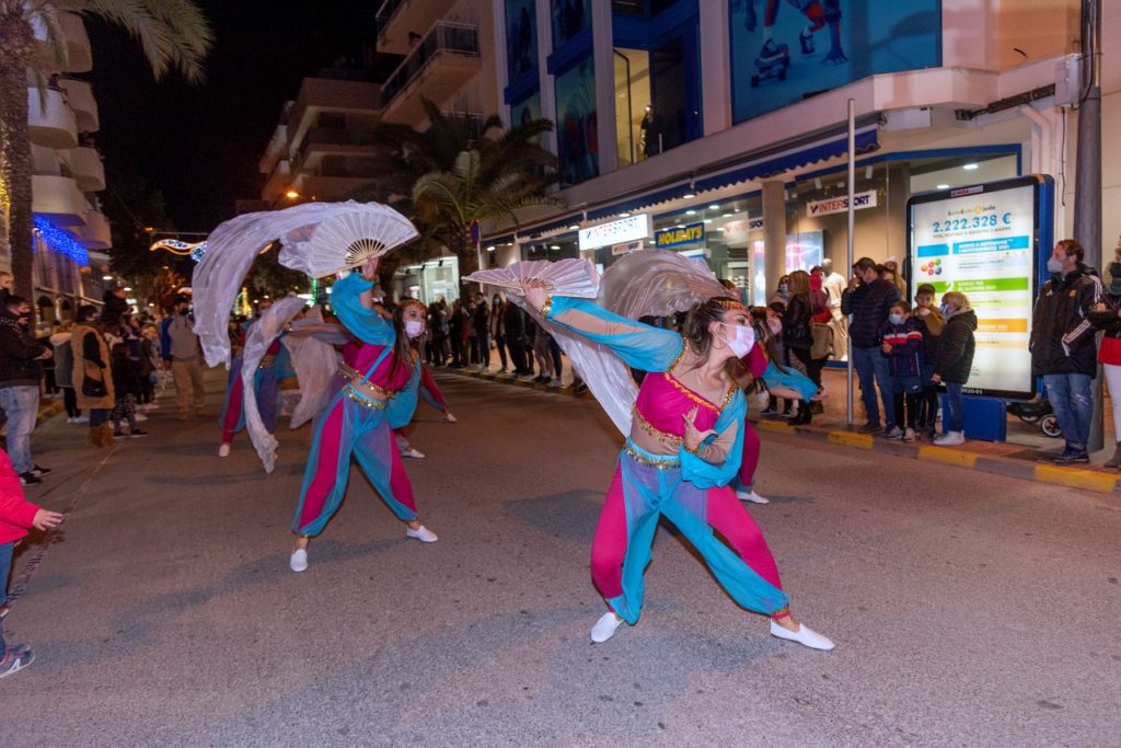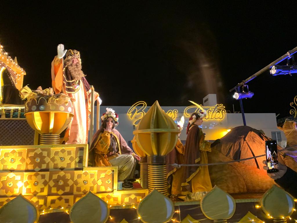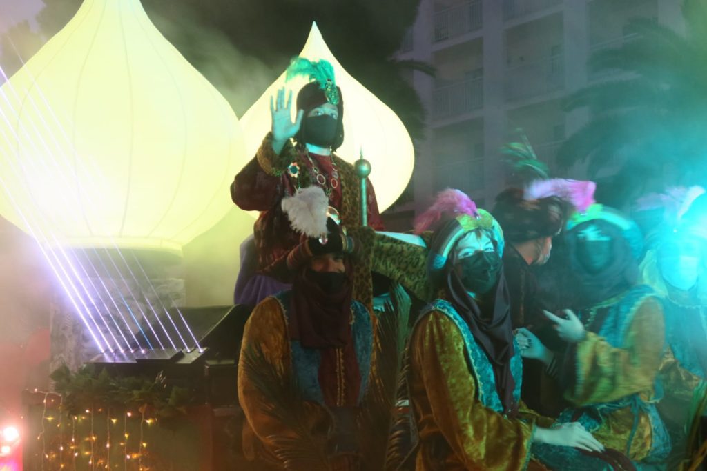 En la ciudad de Ibiza, los más pequeños no han podido disimular su alegría a pesar de que las mascarillas tapaban sus caras. Les han delatado sus miradas de adoración ante Sus Majestades y la manera en que gritaban los nombres de Melchor, Gaspar y Baltasar a su paso por las calles de Vila. Ellos han ido saludando a los asistentes mientras sonaba una música de fondo que este año no se ha podido bailar, por la suspensión de las coreografías de las academias de baile en la Cabalgata. Sin embargo, dichas academias sí han estado presentes mostrando los vestuarios que habían preparado, acompañando a los Reyes en su trayecto y saludando a los asistentes.