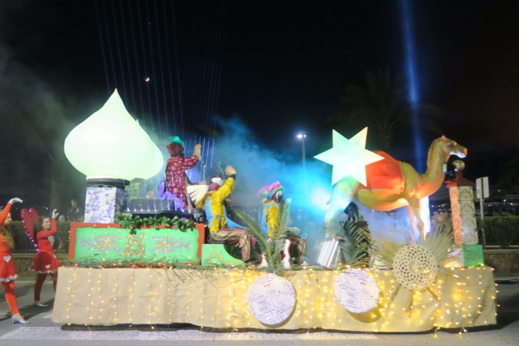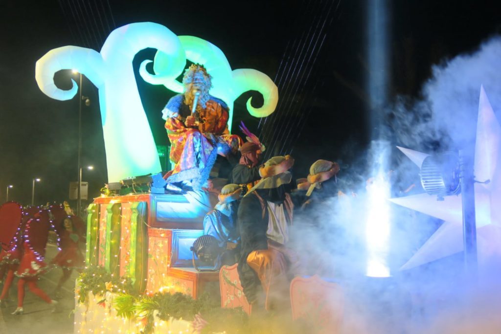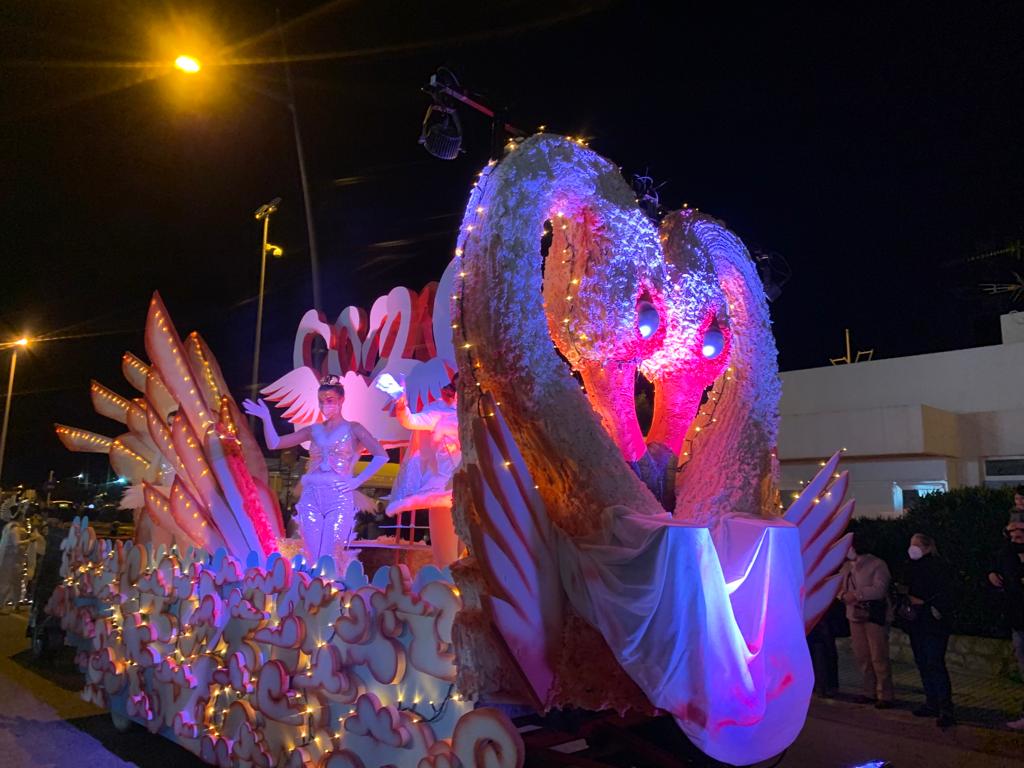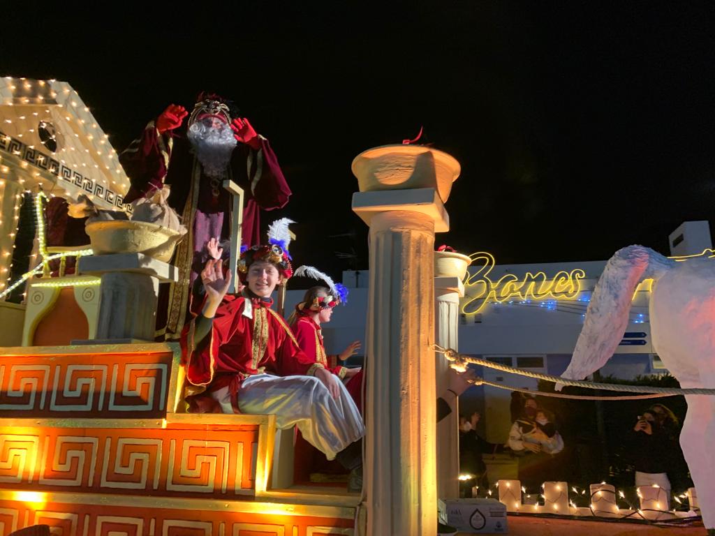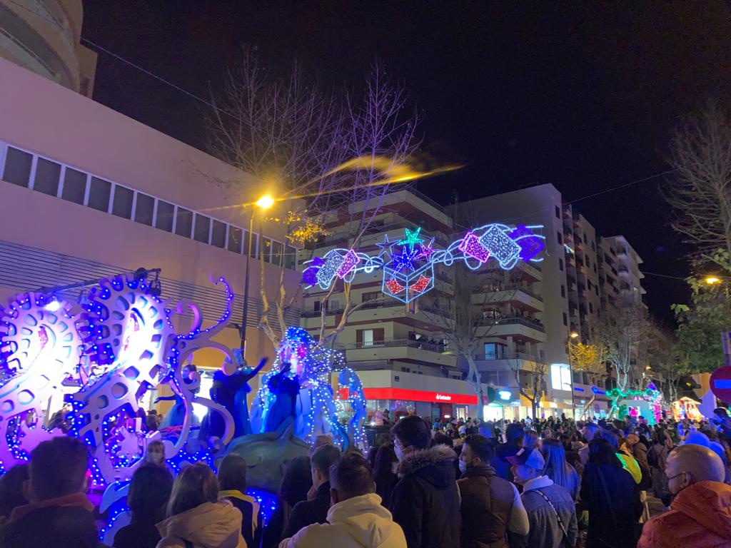 Todo ha comenzado de manera puntual, hacia las 18.30 horas en la avenida de Santa Eulària (ante el puerto de Ibiza), donde decenas de familias esperaban desde media hora antes el momento de volver a ver carrozas por primera vez desde 2019. Las de este año han sido seis y diseñadas por los artistas Streakka y Rodrigo. Cada carroza de los Reyes de Oriente ha querido simbolizar un animal concreto: un caballo en el caso de Melchor, un camello en el de Gaspar y un elefante en el de Baltasar. Por su lado, las otras tres carrozas representaban el aire, el agua y la tierra, con elementos representativos de la pitiusa mayor. De hecho, en una de ellas había una figura muy grande de un podenco y animadores vestidos de payeses. Un joven hacía sonar las tradicionales castañuelas ibicencas.