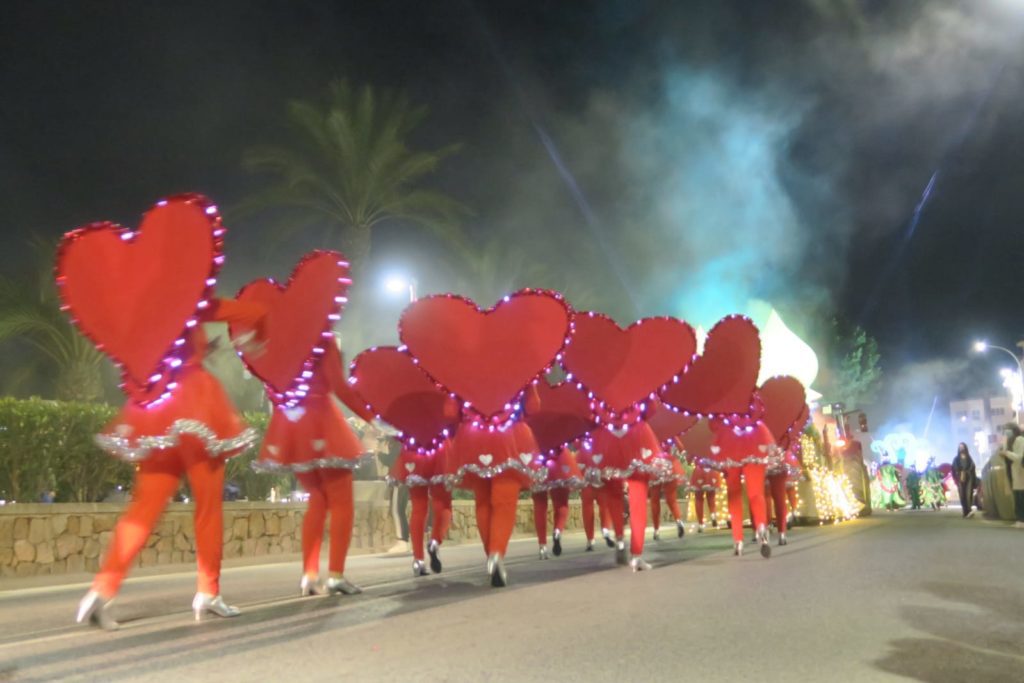 En Sant Antoni de Portmany las carrozas han evitado las calles estrechas e interiores del núcleo urbano, por lo que el recorrido (que ha sido de ida y vuelta) se ha realizado desde la avenida Doctor Fleming, continuando por Passeig de ses Fonts, Passeig de la Mar y el Puerto de Sant Antoni, en este mismo orden.