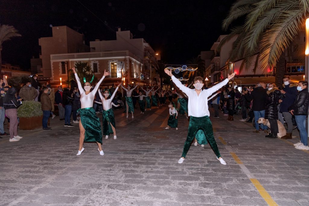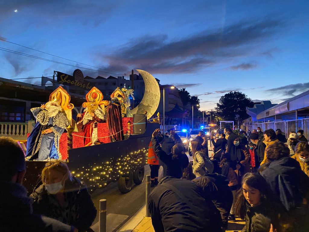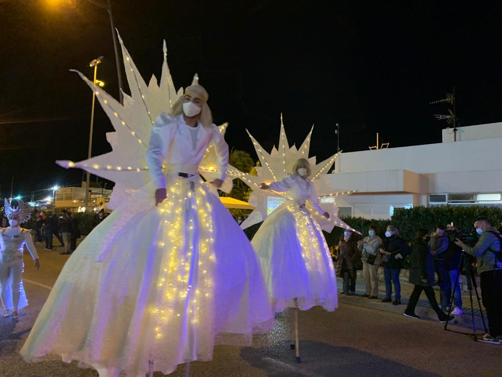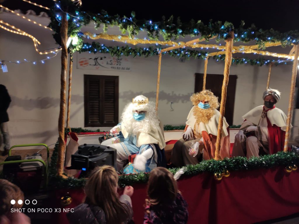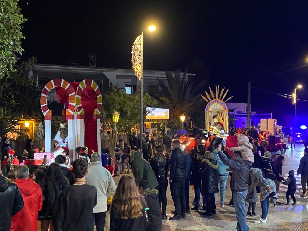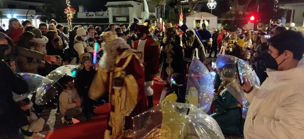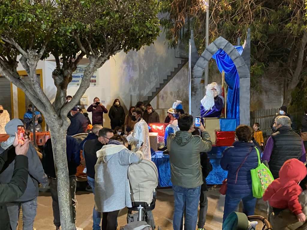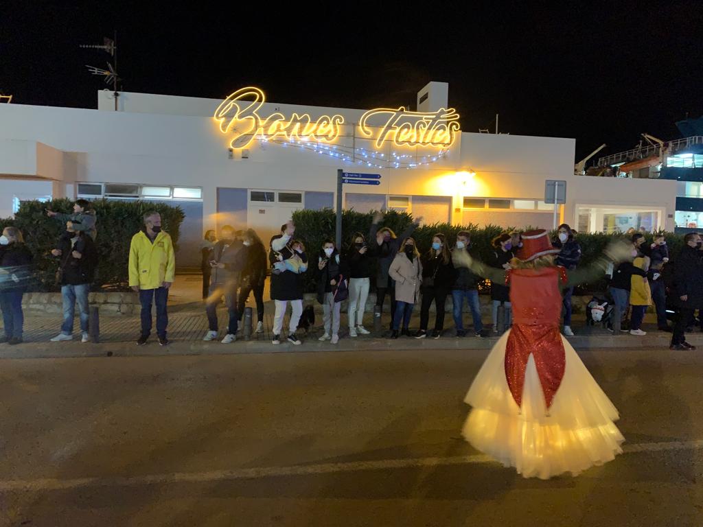 Otro punto de esta mágica celebración ha sido Sant Josep, ya que ha habido Cabalgata en Cala de Bou, Sant Agustí, Sant Jordi y el propio núcleo de Sant Josep. En este caso los Reyes sí han podido entregar personalmente algunos regalos a los niños josepins, aunque teniendo que presentar el certificado covid en la entrada en los casos en los que el reparto se ha hecho en un espacio cerrado.