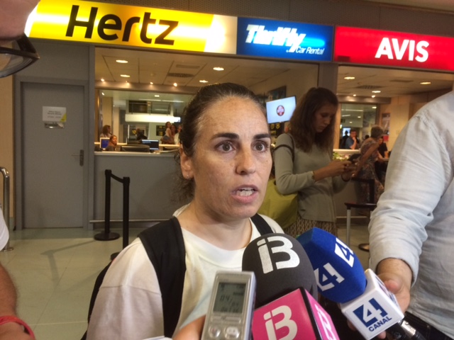 María Teresa Gregorio Roig atendiendo a los medios en el aeropuerto de Ibiza. Foto: L.A.