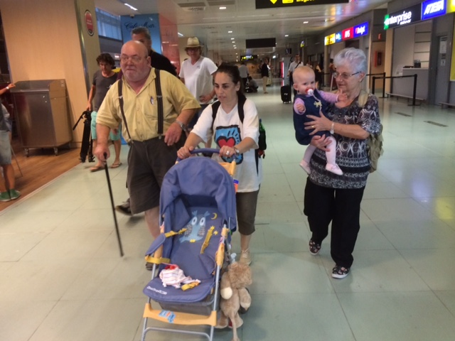 María Teresa Gregorio junto a sus padres y su hija Karla, en el aeropuerto de Ibiza.
