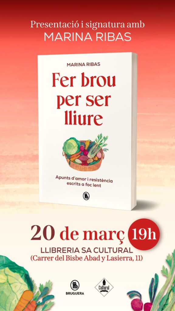 El próximo día20 de marzo, este viernes a partir de las 19 horas, Ribas presentará Fer brou per ser lliure, en la librería Sa Cultural, acompañada por su amiga y técnica de Política Lingüística del Consell de Eivissa, Marta Guasch. Para Ribas, esta charla y esta publicación son una oportunidad para conversar sobre una nueva manera liberadora de ejercer nuestro poder y autonomía a través de la comida.
