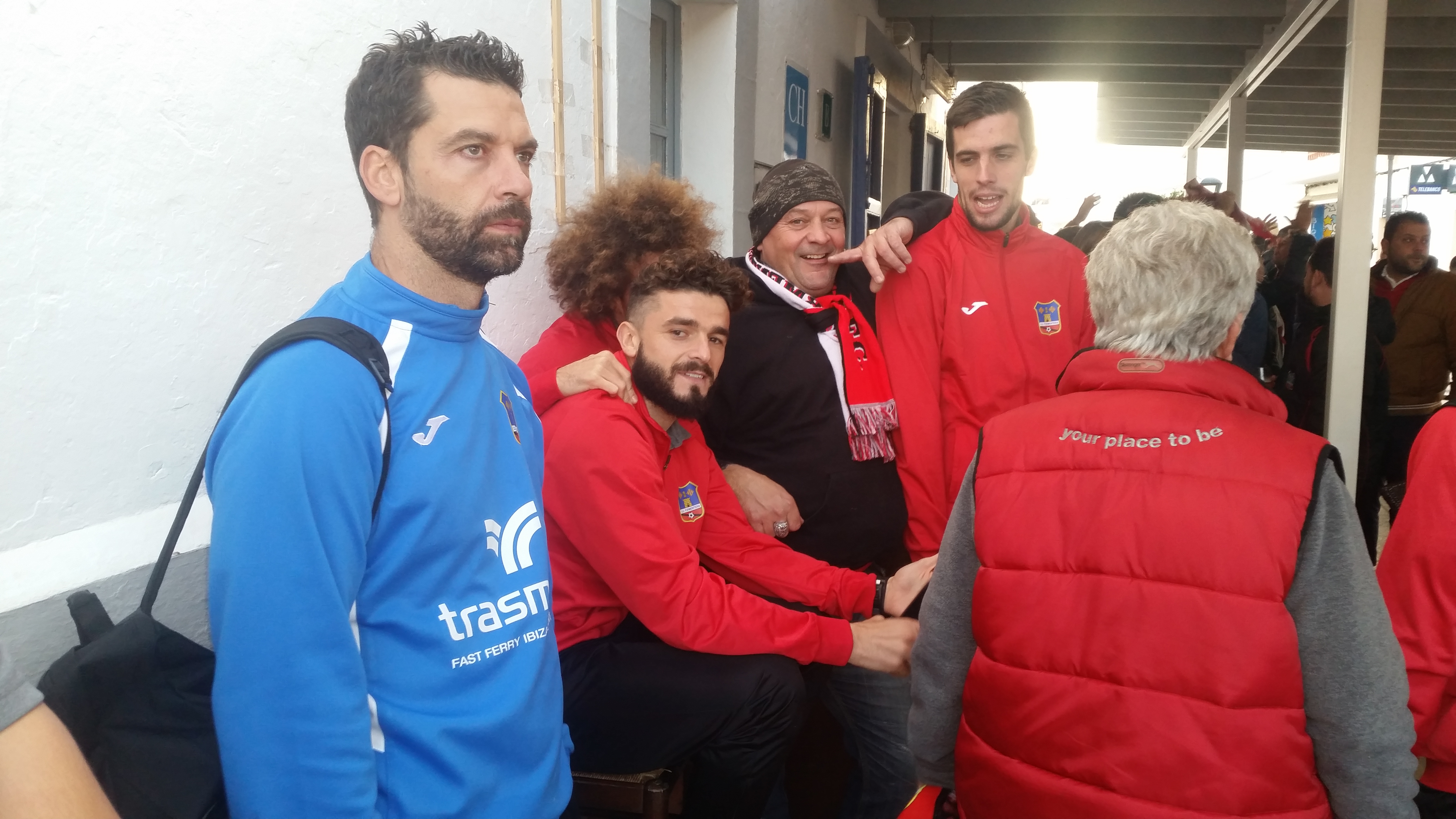 Los jugadores de la SD Formentera y su entrenador, Tito Sanjuán, han acudido a la plaza para darse un baño de multitud con la afición congregada en el lugar. Hace solo unos minutos, toda la plantilla del Formentera ya ha abandonado el lugar en dirección al campo municipal del Formentera.