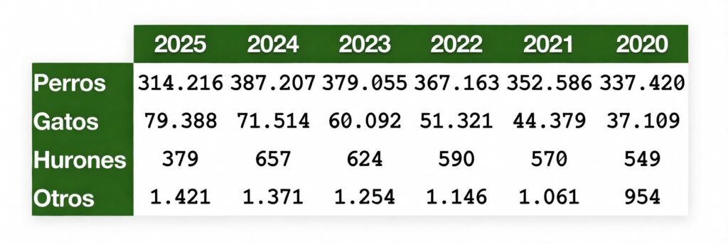 Este aumento de mascotas en las casas se debe a múltiples factores. Masip cita uno: el registro obligatorio derivado de la Ley 7/2023 y normativas autonómicas han hecho que gatos que antes no estaban censados ahora se registren mediante microchip. Esto hace que las estadísticas oficiales reflejen un incremento que en algunos casos solo viene a reflejar la población real que ya había.