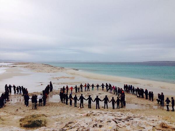 @Noudiari / Desafiando el frío y el viento reinante hoy en Formentera, más de un centenar de personas se han reunido esta tarde en es Trucadors, Illetes, para mostrar su rechazo a las prospecciones petrolíferas proyectadas cerca de las costas pitiusas. La convocatoria ha surgido a través de las redes sociales y ha volado como la pólvora entre la gente de la isla, que ha renunciado a la siesta y puntualmente, a las cuatro, ha acudido al punto de reunión, donde se han colocado estratégicamente sobre la arena para escribir con sus cuerpos la palabra ‘NO’, con la que escenifican su negativa a los planes de agujerear el subuelo marino de la zona en busca de hidrocarburos.