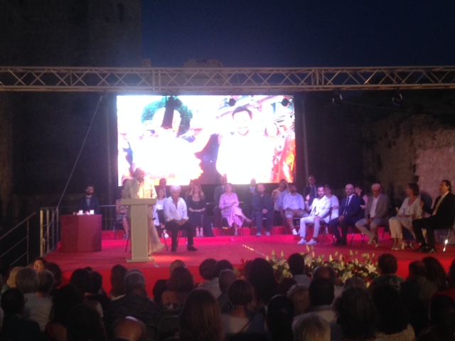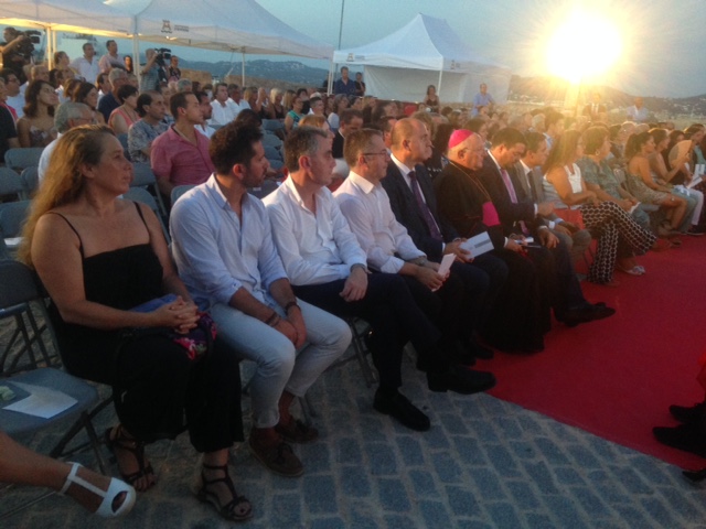 También acudieron personajes conocidos de los premiados como Pino Saglioco, Carlos Martorell, Pocholo Martínez Bordiú o el poeta Antonio Colinas. Sobre el escenario y soportando estoicamente el calor, estaban todos los concejales de la corporación local, tanto el gobierno como de la oposición.