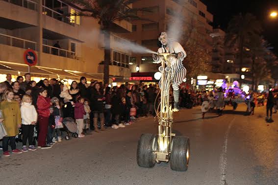@Noudiari / Música, danza y circo han dado un toque de color especial a la cabalgata de los Reyes Magos de Vila, que ha sido seguida por cientos de personas a lo largo de su recorrido por las calles de la ciudad. Una multitud de niños se agolpaba en el puerto para recibirlos, donde nada más bajar han saludado a las autoridades locales para dirigirse después a las engalanadas carrozas que les aguardaban.