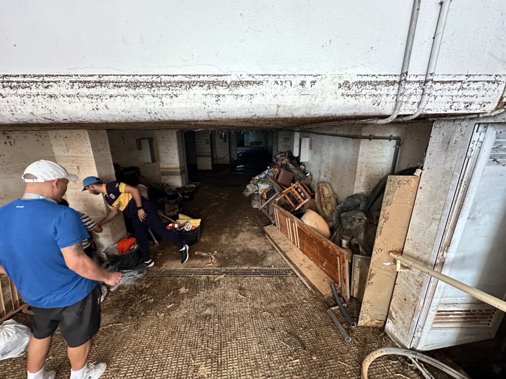En estos espacios, los trasteros quedaron totalmente destruidos: colchones, sillas, juguetes y todo tipo de pertenencias personales se acumulan ahora a las puertas de los portales, a la espera de ser retiradas por los servicios de limpieza. “Todo está perdido, no se puede aprovechar nada”, lamenta uno de los vecinos que explica que tuvieron que echar mano de transformadores para poder tener luz durante varios días porque los contadores que están en el sótano quedaron anegados e inservibles. Ahora ya cuentan con suministro eléctrico normal.
