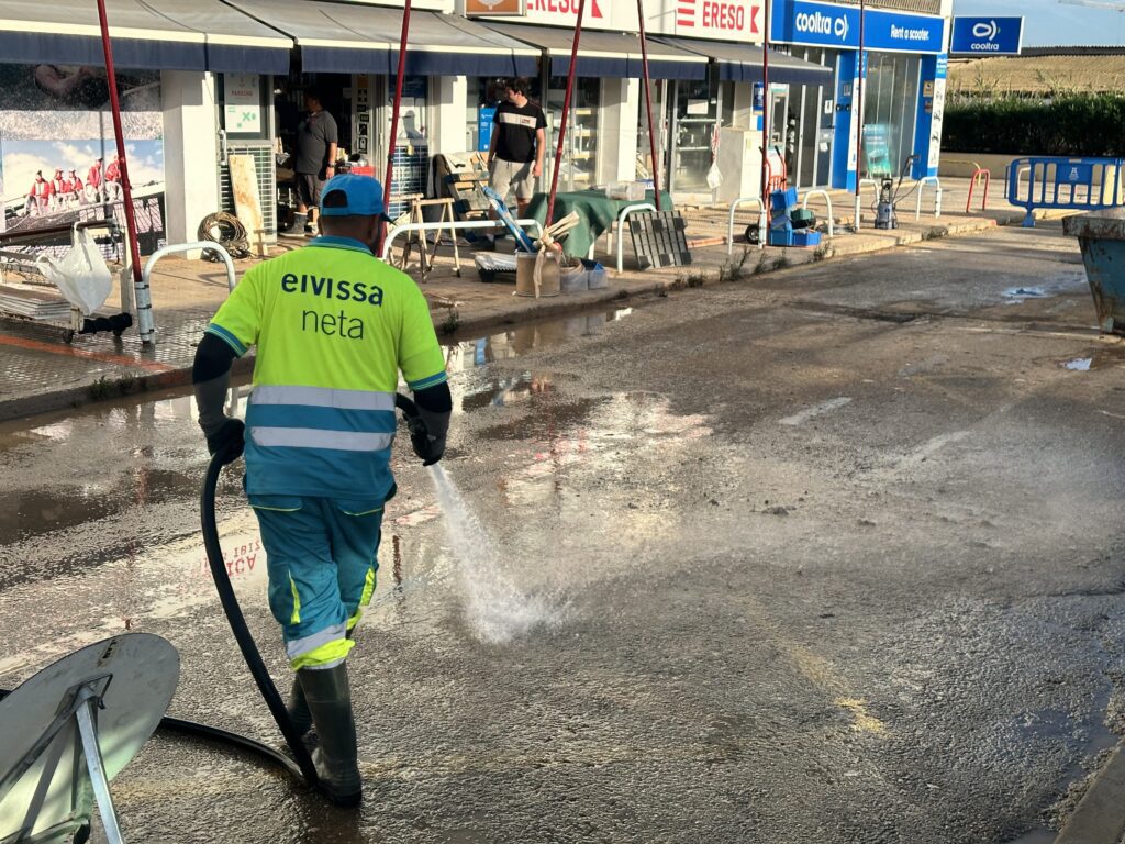 Los trabajos de limpieza continuarán varios días más en una de las zonas más golpeadas por las lluvias, mientras vecinos y comerciantes intentan, poco a poco, recuperar la normalidad en el corazón de Ibiza.