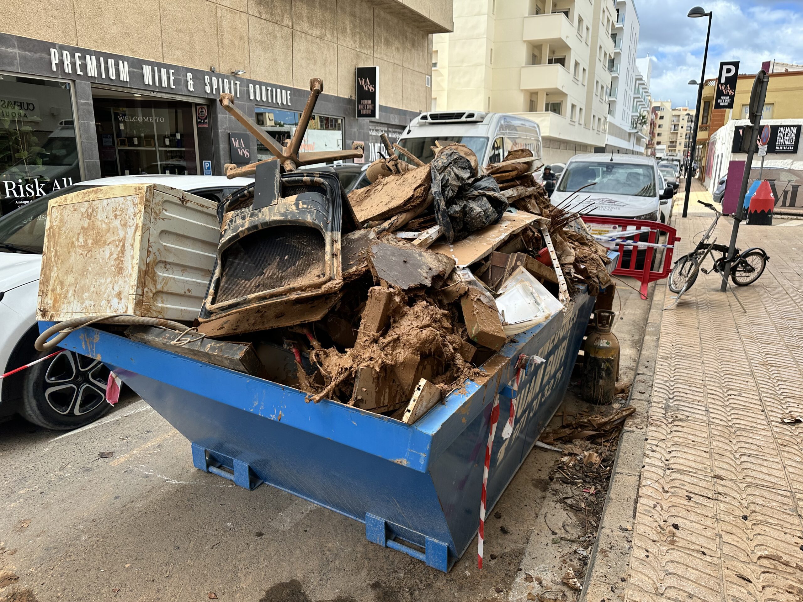 En estos espacios, los trasteros quedaron totalmente destruidos: colchones, sillas, juguetes y todo tipo de pertenencias personales se acumulan ahora a las puertas de los portales, a la espera de ser retiradas por los servicios de limpieza. “Todo está perdido, no se puede aprovechar nada”, lamenta uno de los vecinos que explica que tuvieron que echar mano de transformadores para poder tener luz durante varios días porque los contadores que están en el sótano quedaron anegados e inservibles. Ahora ya cuentan con suministro eléctrico normal.