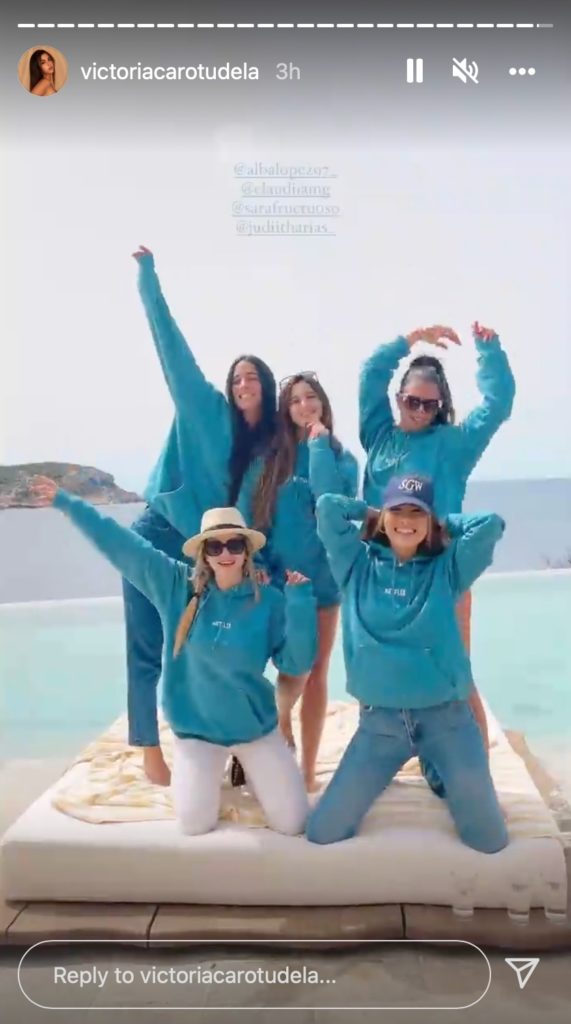 Muchos han publicado imágenes en el establecimiento, que cuenta con vistas a toda la bahía desde las habitaciones y desde algunas zonas comunes del hotel. También se han dejado ver bailando en un ambiente de fiesta, realizando sesiones profesionales de fotografía y vídeos para TikTok o comiendo todos juntos. De hecho, la artista Victoria Caro ha compartido con sus seguidores una imagen de la carta especial que les han preparado, con el nombre de la serie y el logo de Netflix.