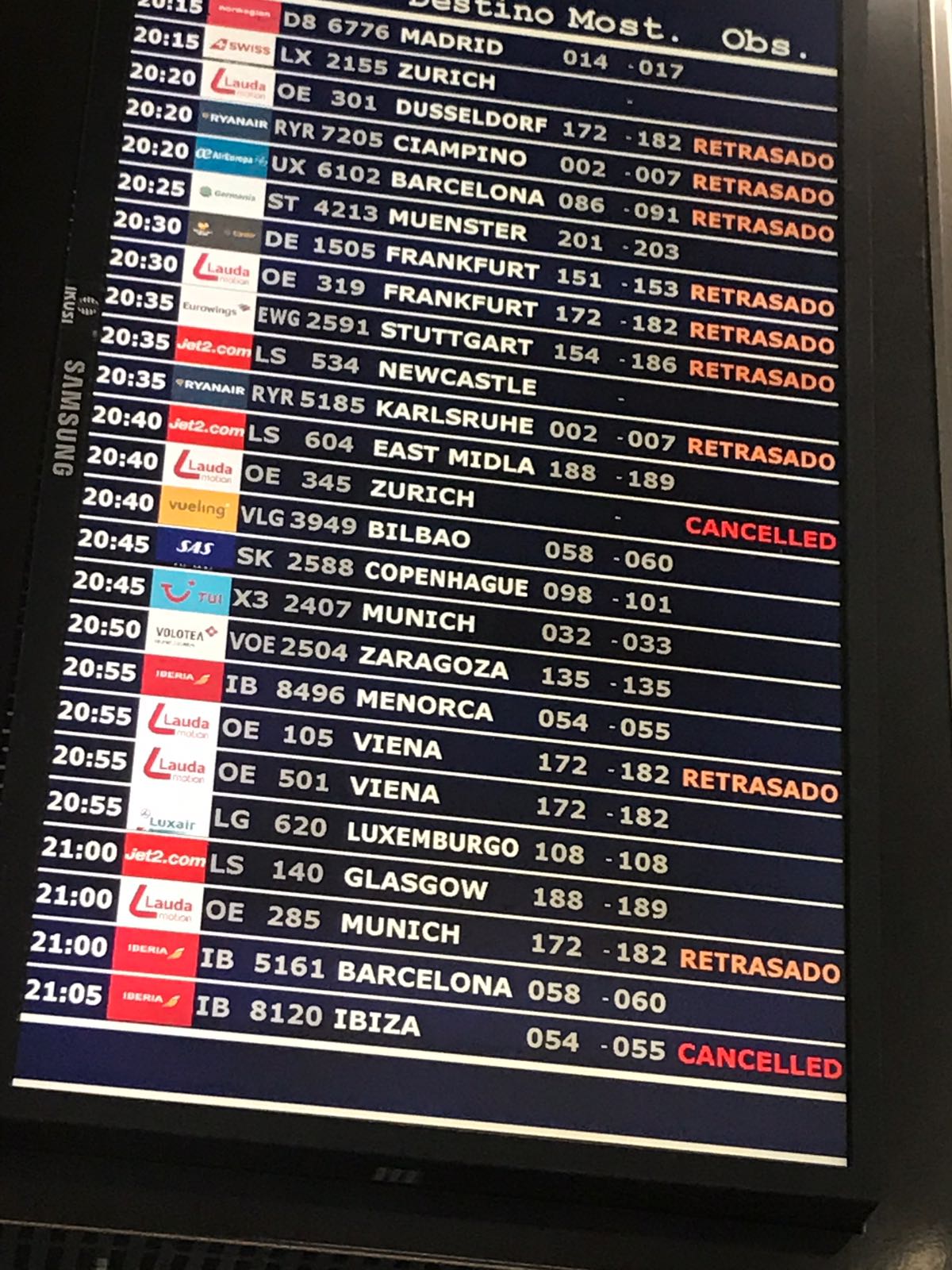 Por otro lado, una tormenta eléctrica causó importantes retrasos en los vuelos.
