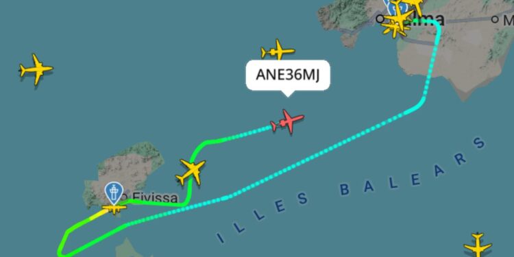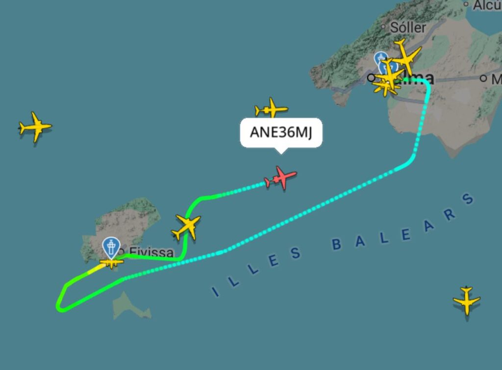 Así, un pasajero ha compartido con Noudiari una captura de la actualización de su vuelo por radar que muestra como un vuelo de Mallorca llega hasta Ibiza pero se da la vuelta hacia la misma sin poder llegar a aterrizar.