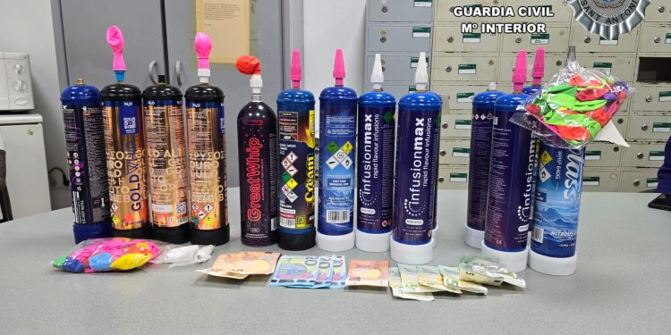 En el operativo han intervenido numeroso material relacionado con la venta de óxido nitroso como botellas, dispensadores, los globos que son rellenados con la sustancia y dinero obtenido de la actividad ilegal.
