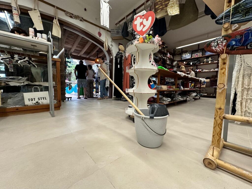 Interior de Tot Styl tras la limpieza de agua y barro que entró ayer. Fotos L. F. A.