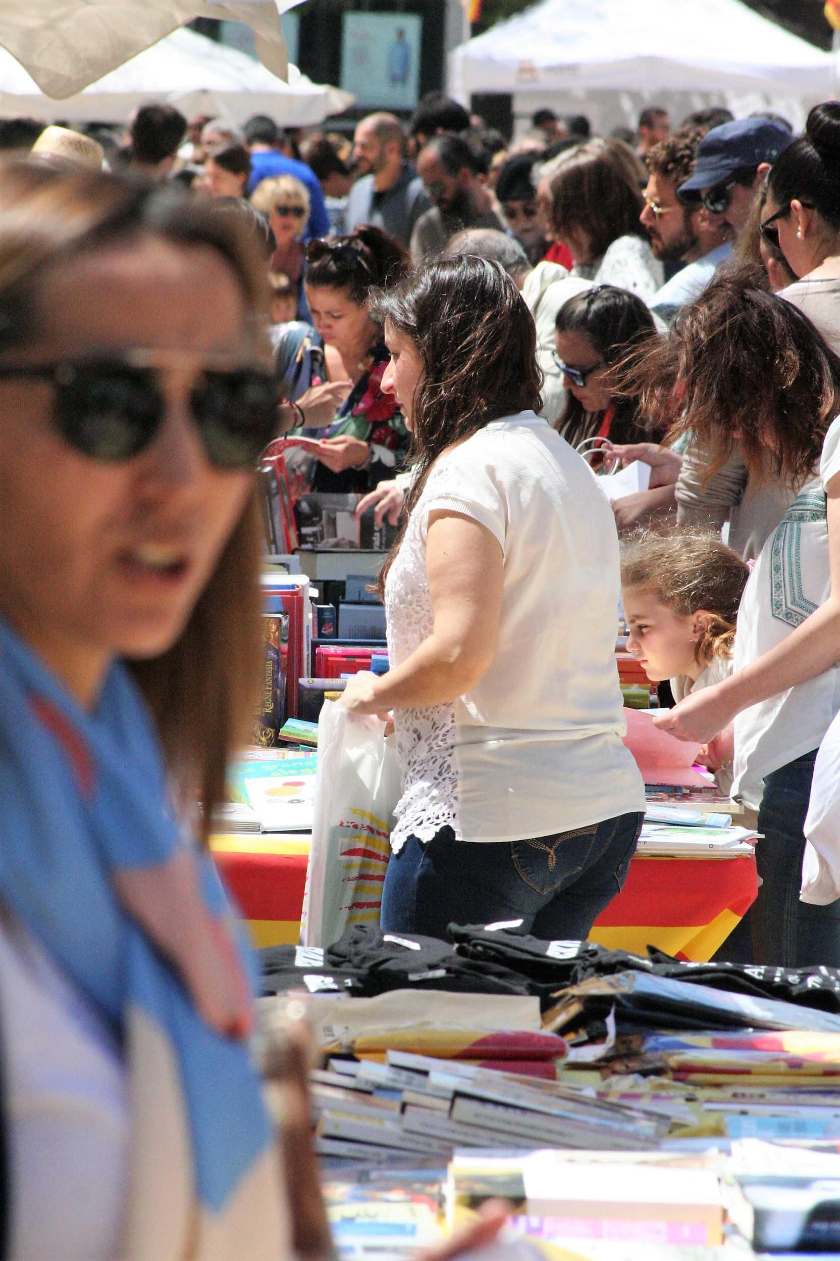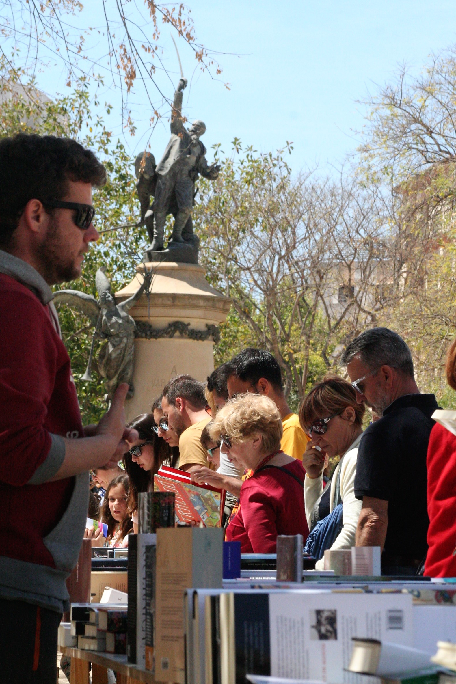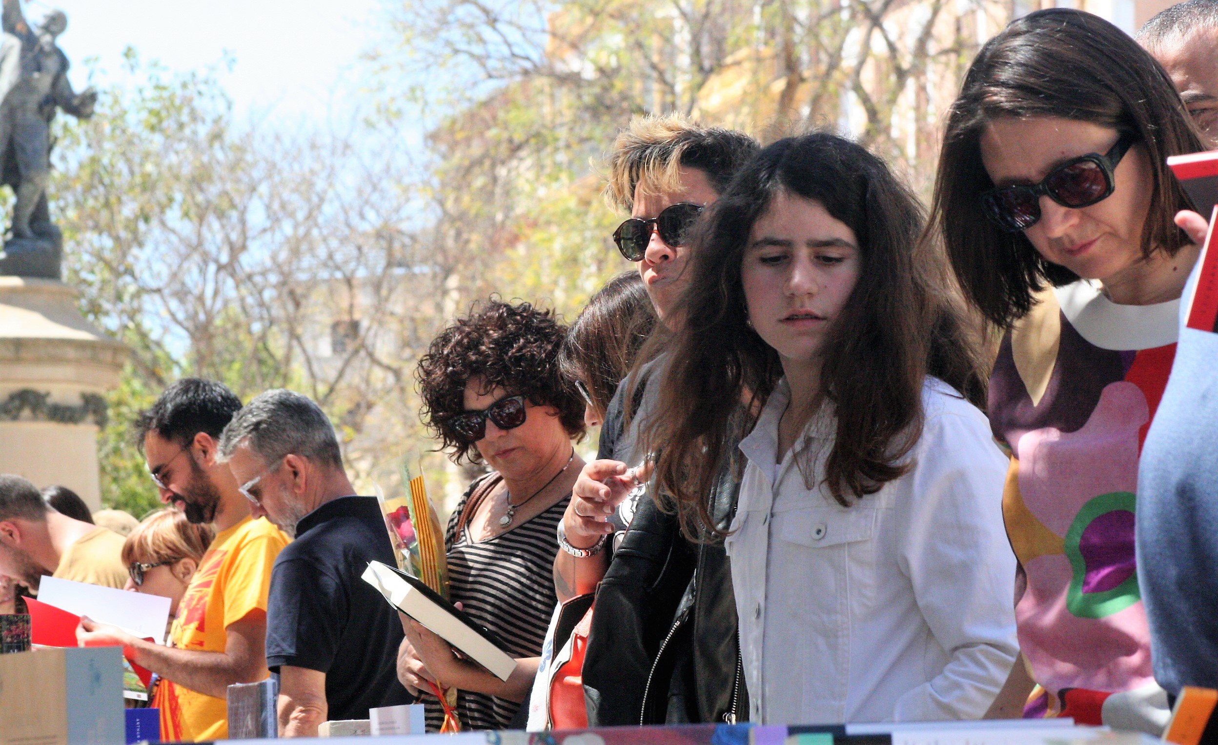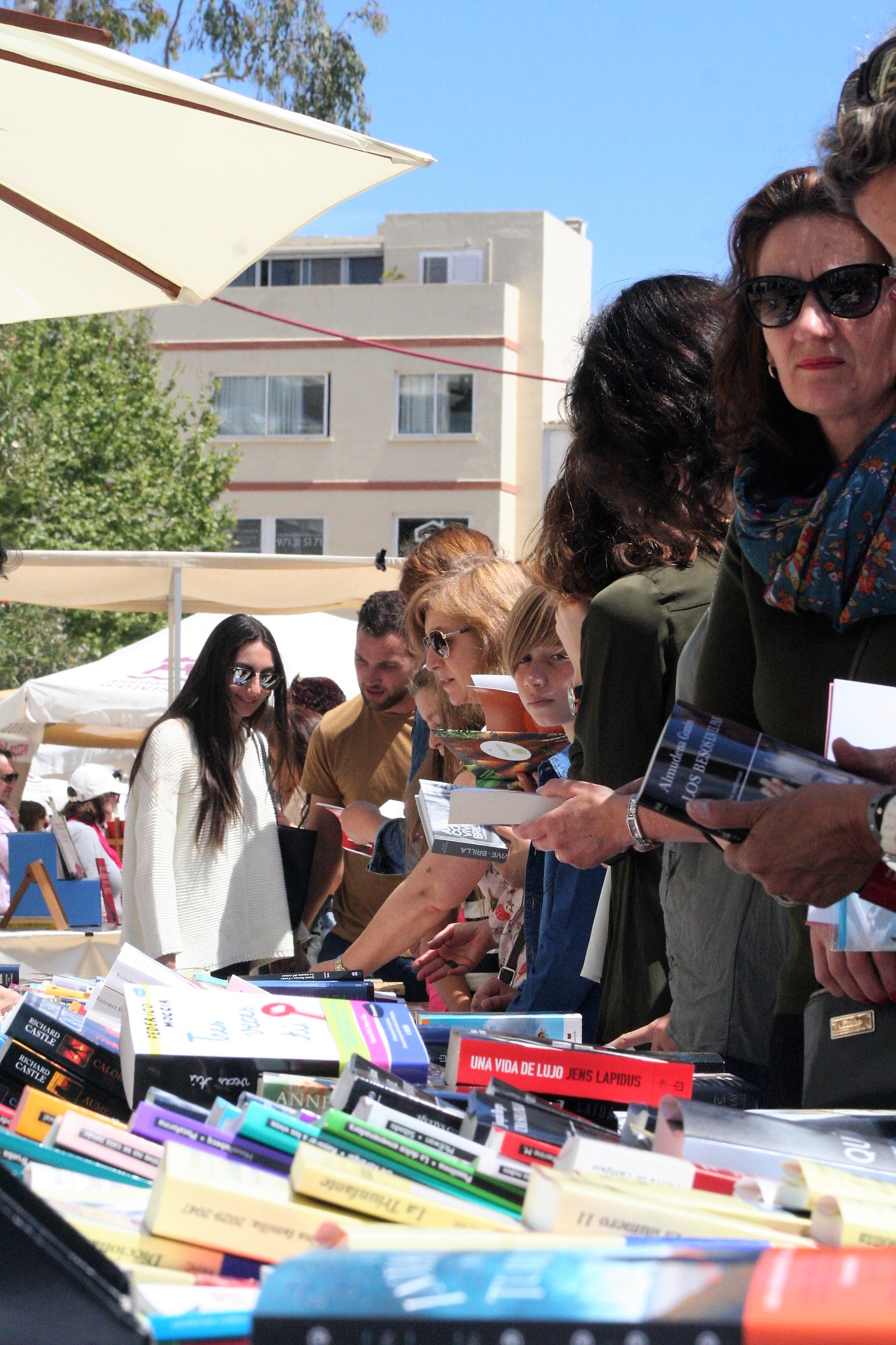 @Pablo Sierra del Sol / Las vallas que delimitan la zona de obras de Vara de Rey se han retirado justo a tiempo para que por el paseo avancen las ganas de leer de los ibicencos que esta tarde se han sumado a la celebración de Sant Jordi. Un 23 de abril más, las mesas que librerías y asociaciones culturales han montado en el corazón de Vila, no han dejado de despachar novelas, poemarios, libros de autoayuda o de cocina durante una jornada en la que ha reinado el sol de primavera. Los más pequeños, aunque parezcan condenados a desterrar definitivamente el papel por la pantalla, también han disfrutado de lo lindo.