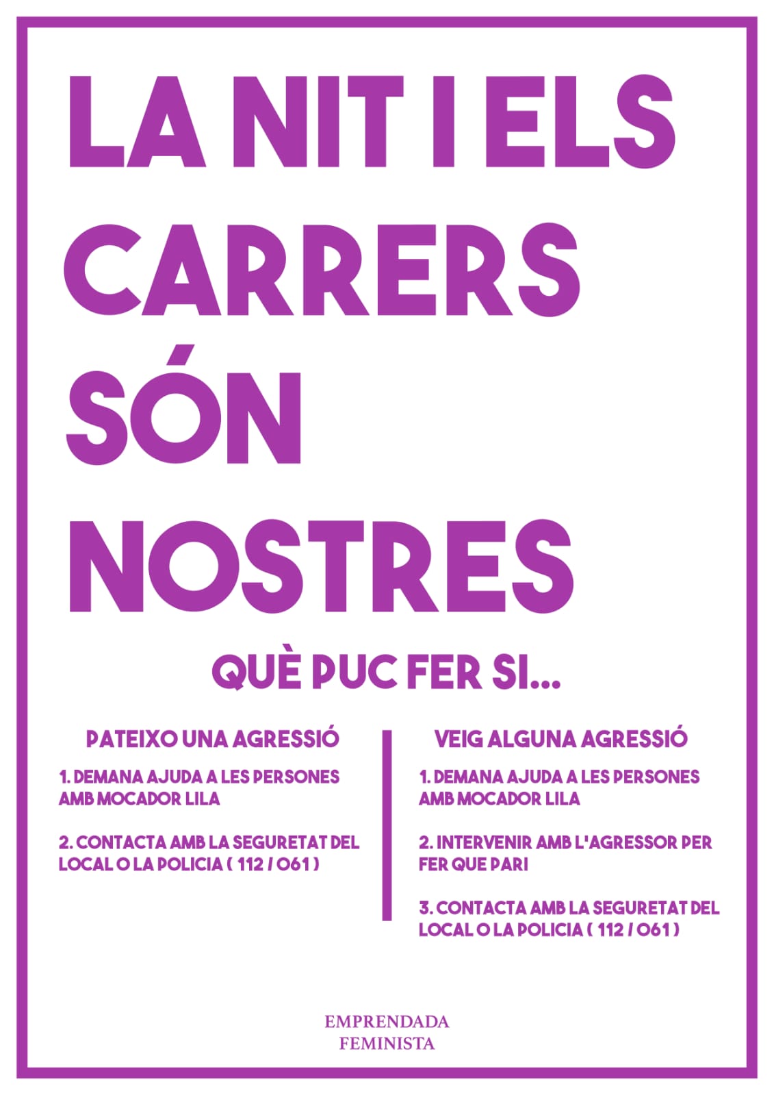 De momento, Emprendada Feminista, que ya cuenta con 25 afiliadas, centrará sus esfuerzos en los dos puntos de mayor actividad durante la madrugada del 1 de enero: la zona conocida como Los Pasajes, en Vila, y los bares de ocio nocturno de Sant Antoni. La iniciativa se dividirá en dos campañas.