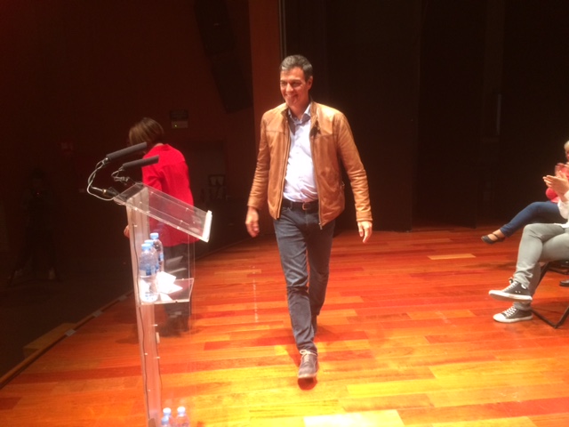 El candidato en las primaria del PSOE, Pedro Sánchez, en el auditorio de Cas Serres. Foto: L.A.