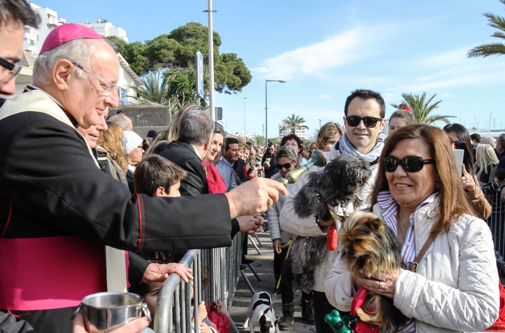 Después de la misa solemne y de la posterior procesión, fue el turno de los mascotas, que fueron consagrados en el Passeig de ses Fonts por el obispo de Eivissa, Vicente Juan Segura. Los perros, como es habitual, fueron los más numerosos, aunque tampoco faltaron a su cita con el agua bendita otras especies, principalmente caballos y tortugas, aunque también fueron varias las personas que se trajeron a sus gatos, pájaros, peces, conejos e, incluso, cobayas.