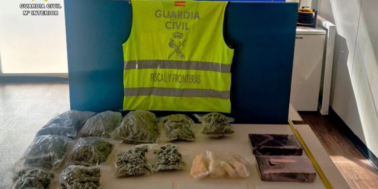En el registro del coche, la Guardia Civil dio con un doble fondo construido bajo los asientos de atrás donde había siete paquetes que contenían las diferentes sustancias estupefacientes que le fueron incautadas.